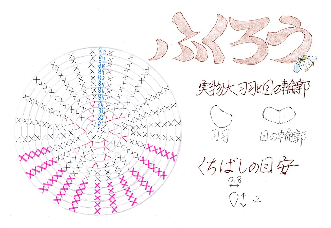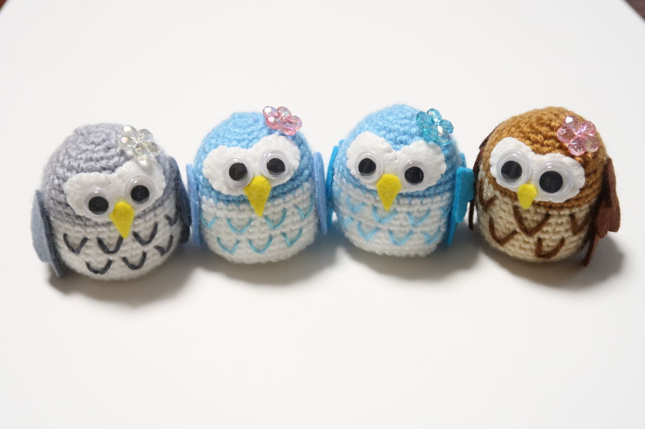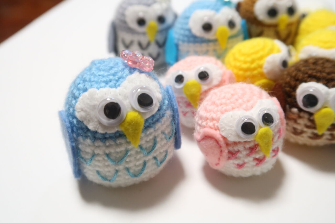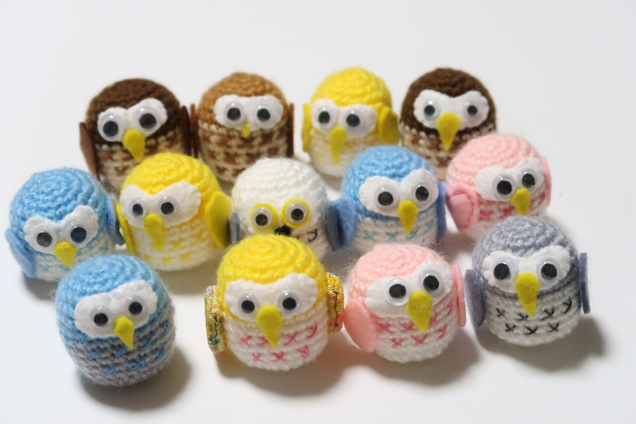 今度はフクロウです。編み図は単純で分かりやすいです。小さいのいつでもどこでも連れていけます。