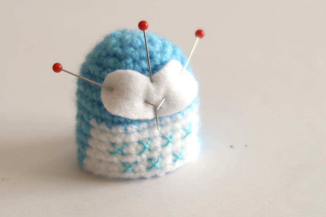 フェルト・・・目用白、羽用青、くちばし用黄色