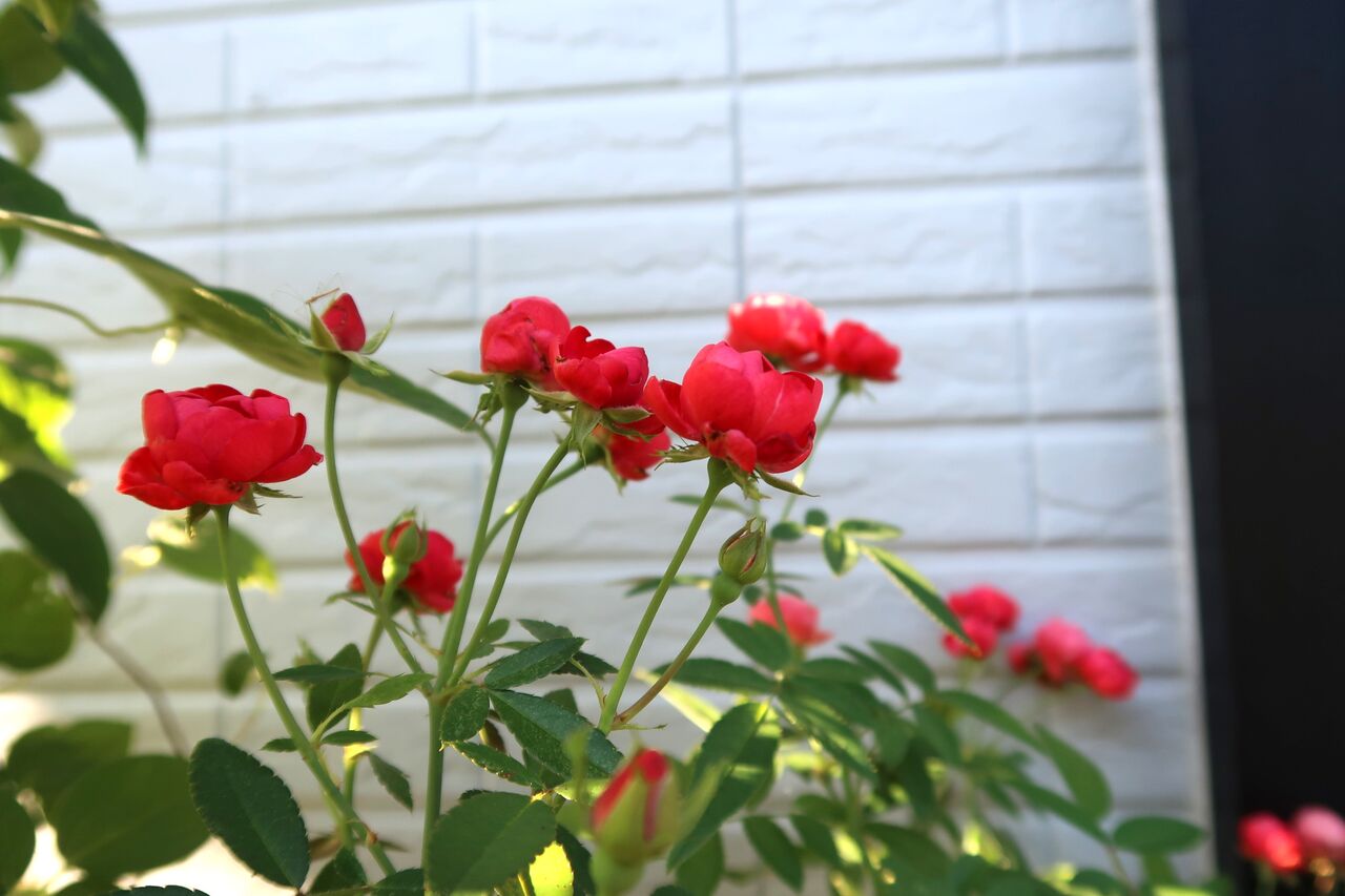 少しくらいの日当たりの悪さは気にしないエスタディ。枝がしなやかに伸びる修景用のバラで足元を隠すのもありですね。低いフェンスなどに誘引してもいいです。