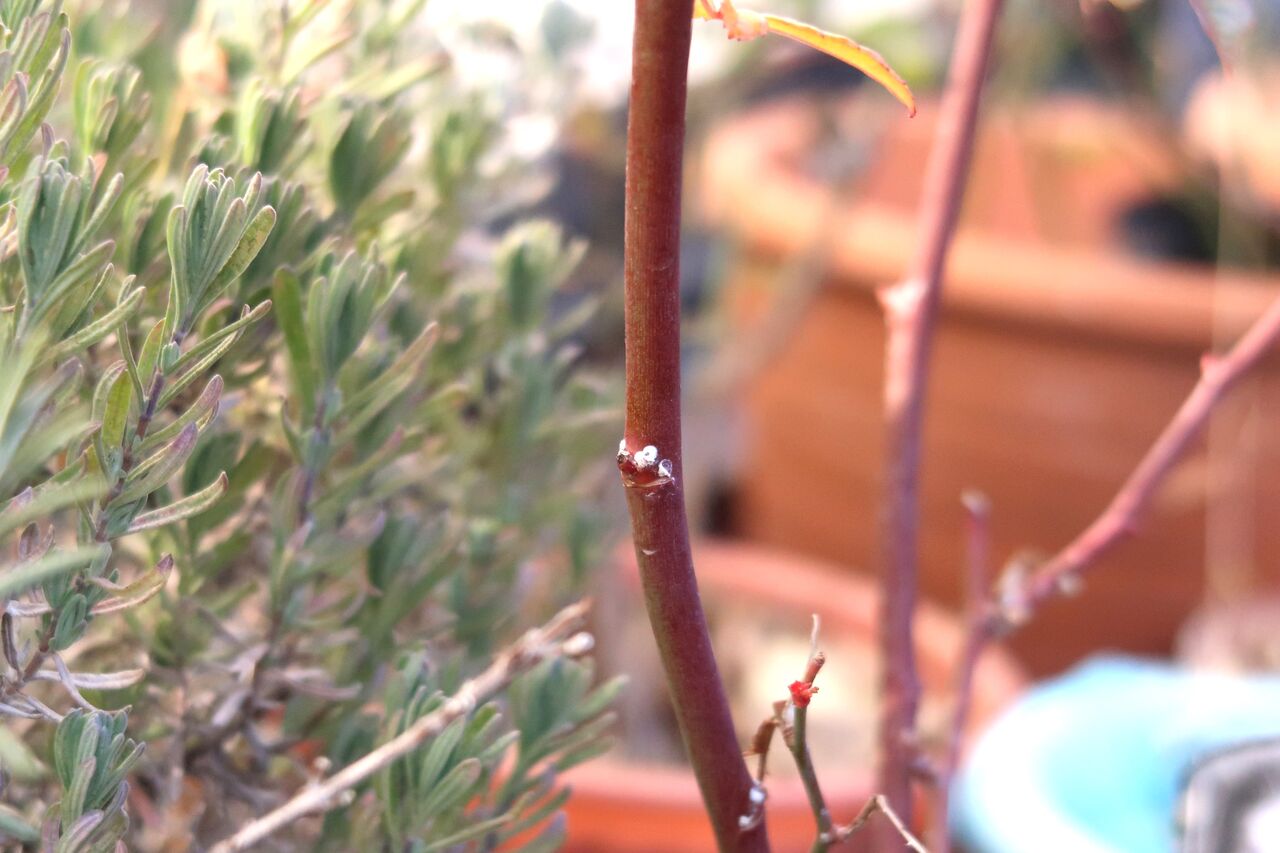 実はサマンサがテッポウムシの被害に遭っていました。さし木しておいてよかったですぅ~~~