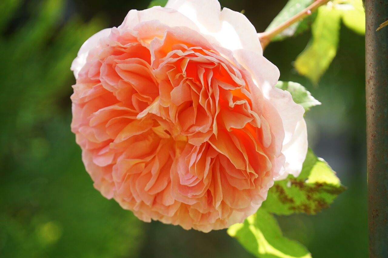 アルキミストは一期咲きですが、花びらがたくさんあって豪華なアプリコットの花です。シュートの芽の全部から新枝を出し花を咲かせます。シュートは太く硬いです。低い位置に誘引するのはむずかしいです。