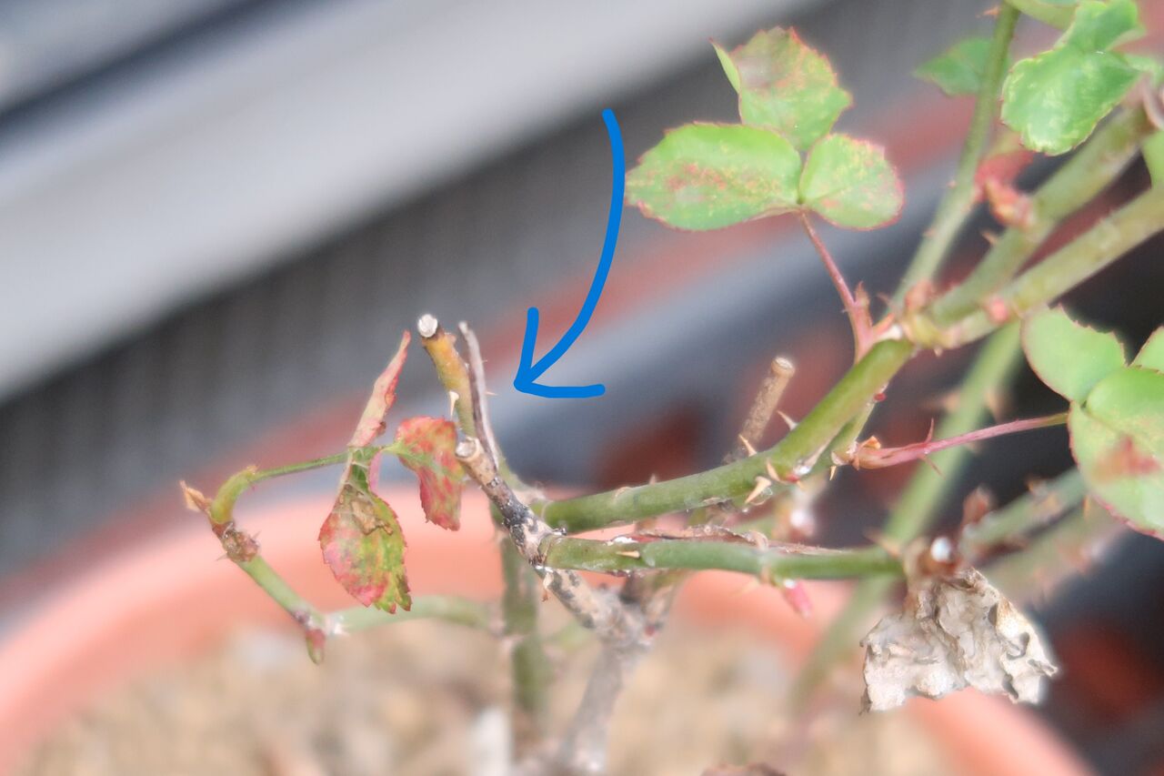 バラの剪定は品種によっても剪定する枝の太さは違ってきますが、大体は鉛筆より細い枝にはいい花がさかないから切ると言います。