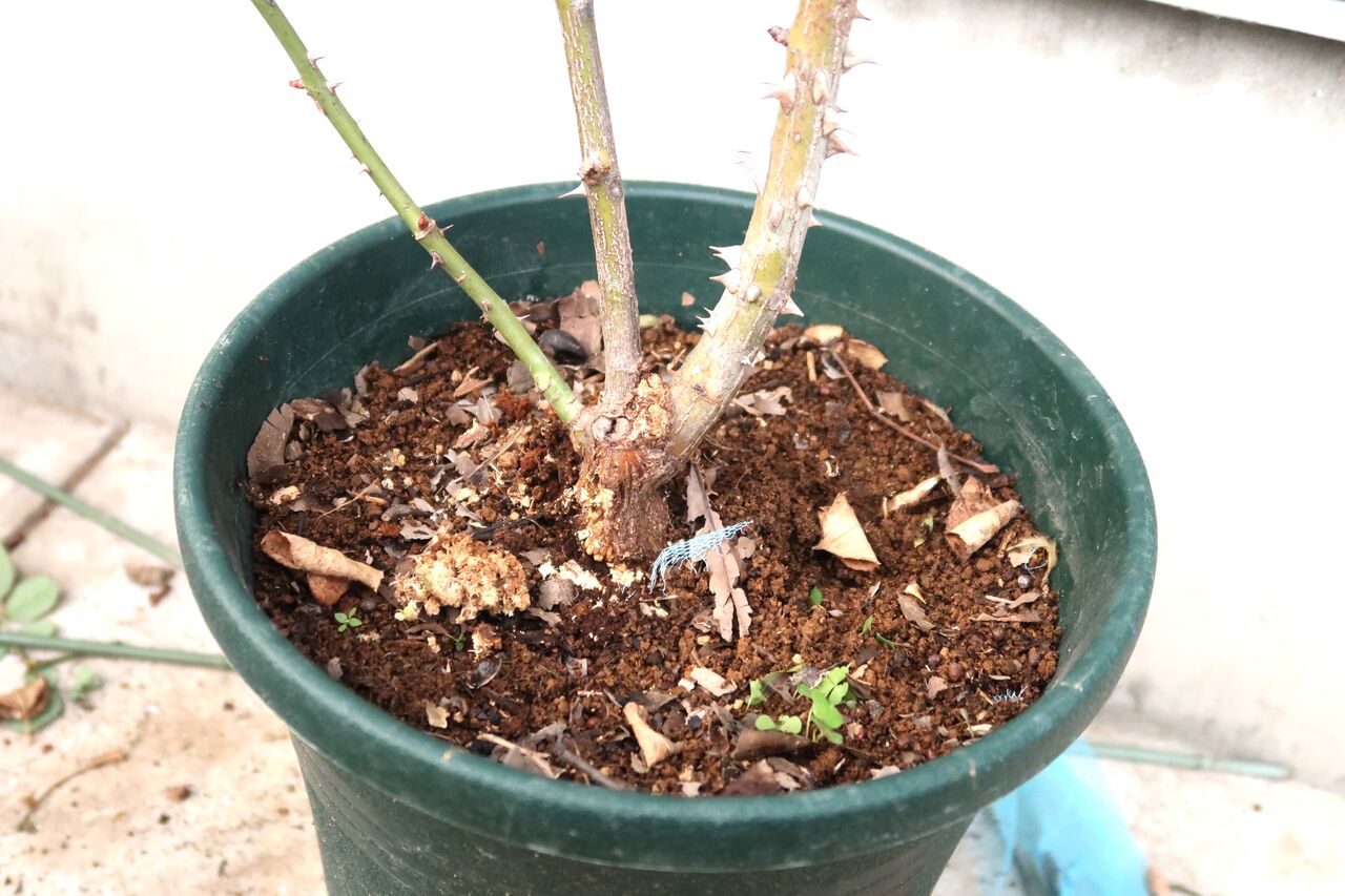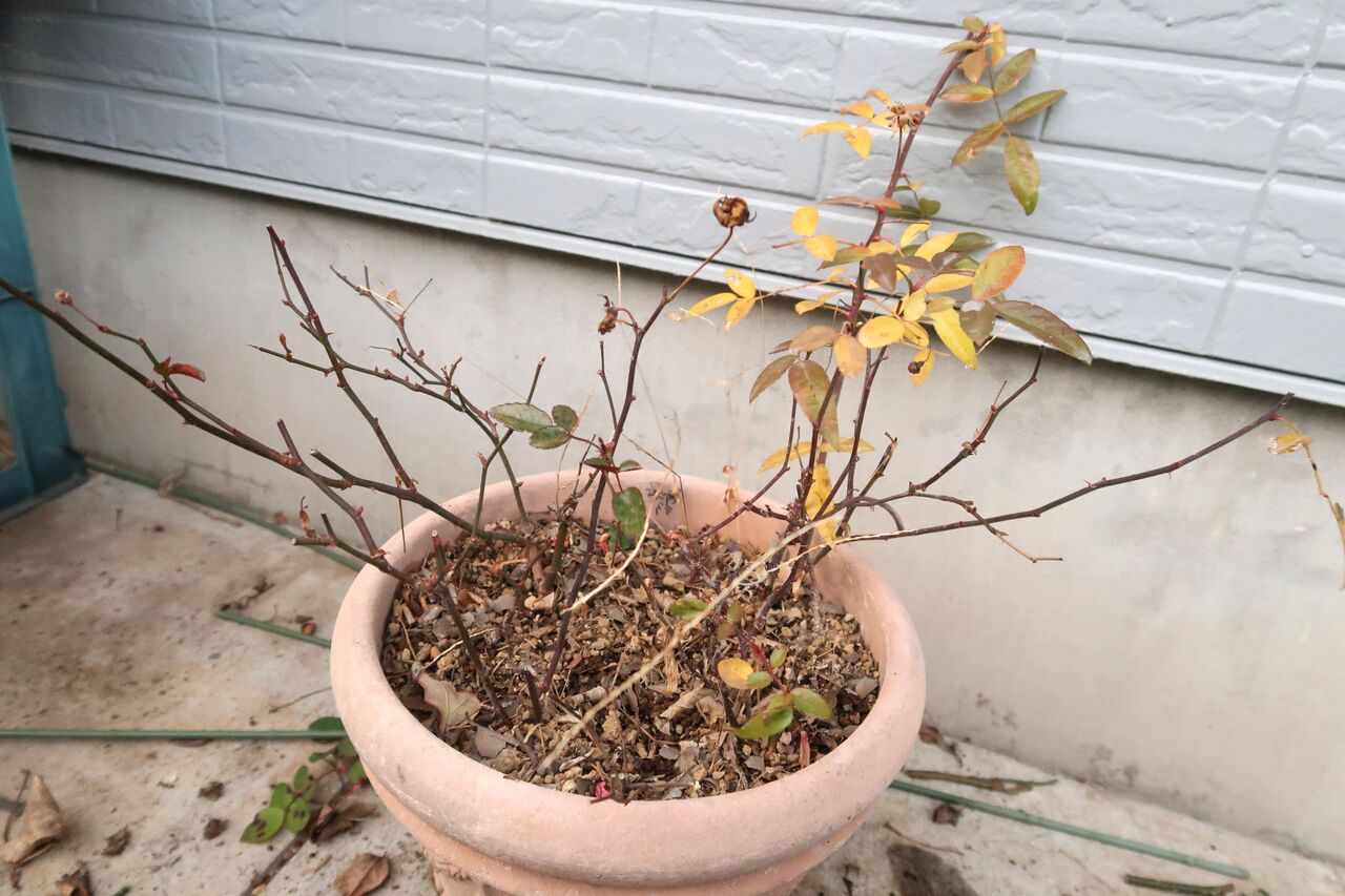 バラの花を立派に咲かせるための大事な作業が、この寒い冬の間にあります。不要な枝の剪定や休眠中だからできる土を掘り起こして与える寒肥、植え替え作業などです。
