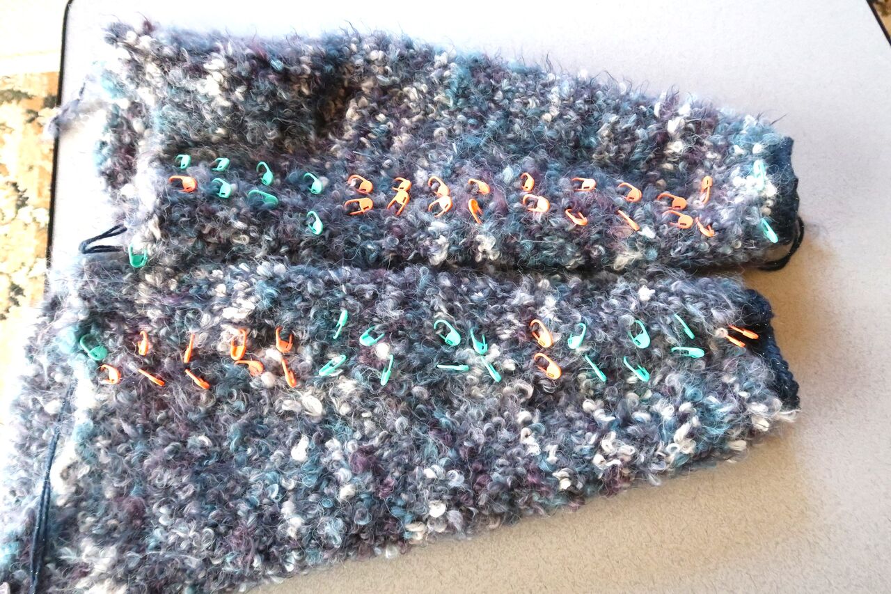 編みあがると編み地が分厚いので最初にデザインしていた形ではきれいにできないことが分かり、また袖の形を変えるつもりです。