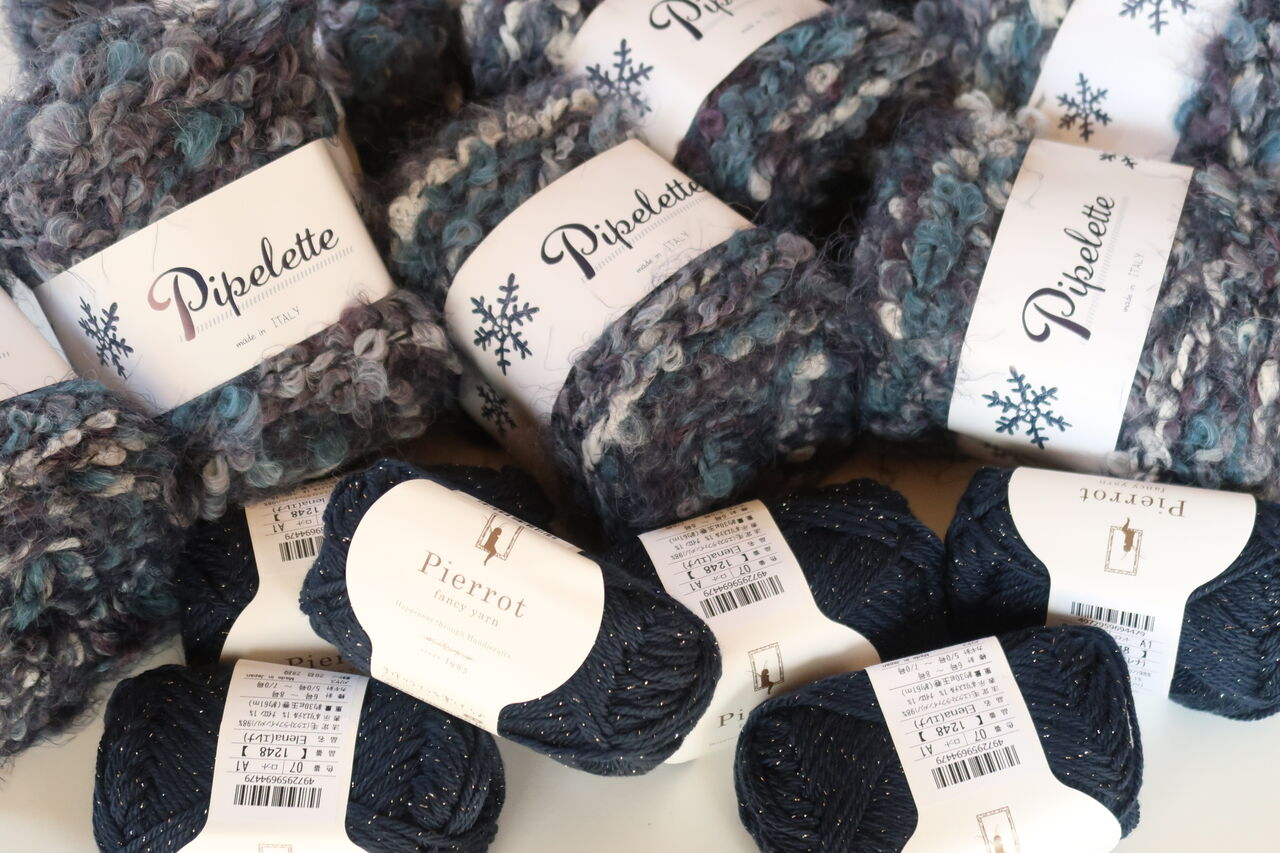 極太毛糸とラメ入りの毛糸