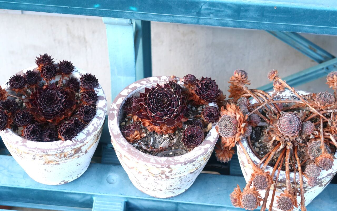 寒さに強い多肉は外です。外に置くほうがきれいです。