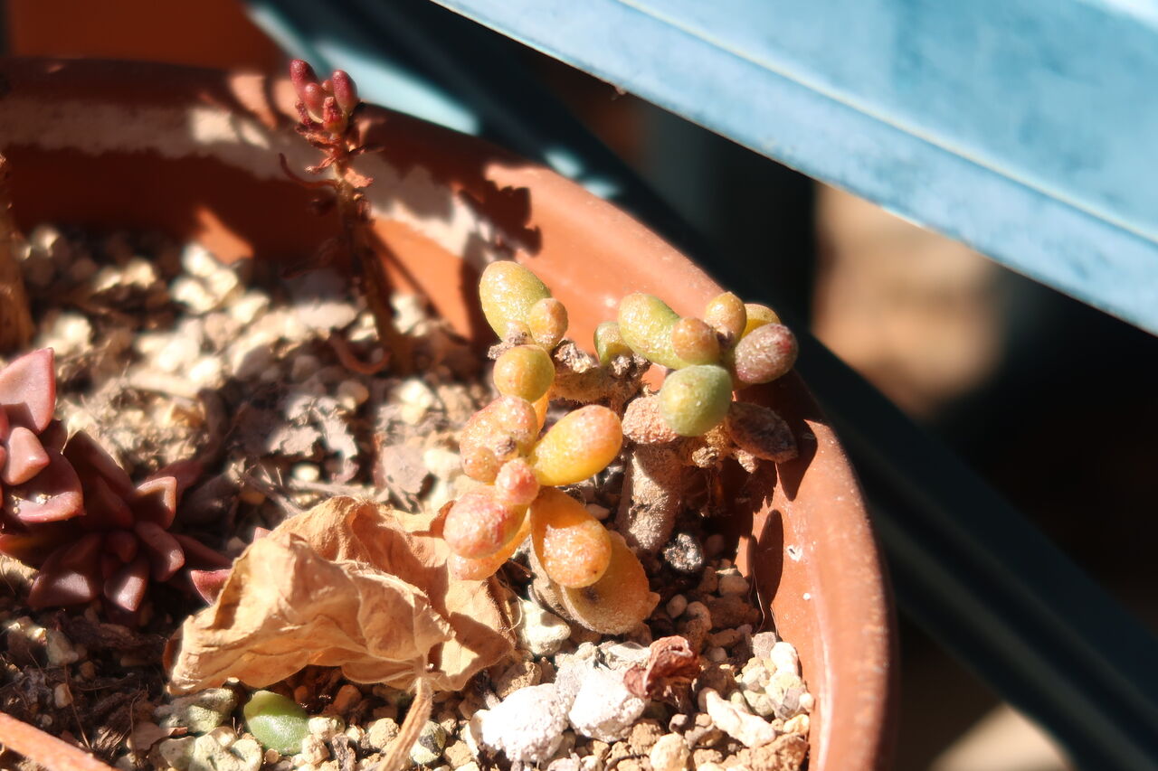 こちらも寒さに弱いです。+7度に取り込んでそのままです。色が薄く緑になり葉も小さくなりました。好きな多肉です。多少見た目が悪くなっても室内に置いて枯れないようにしています。