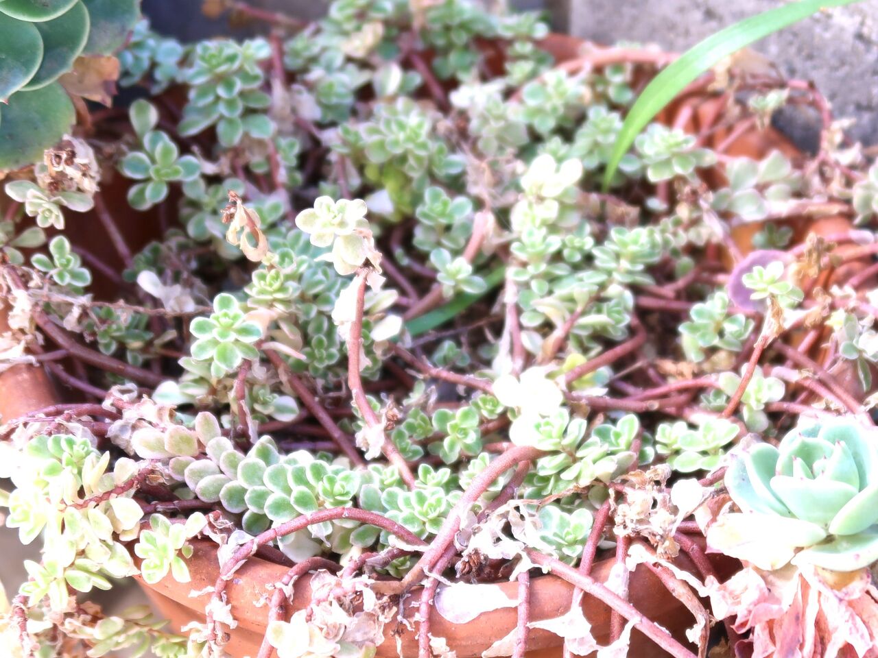 寒さに強いですが、毎年冬越した株は枯れて、さきしたものが残ります。グランドカバーにもなるときくのですが、毎年挿し木しなければならないなんて・・・何が原因なのかま分かりません。