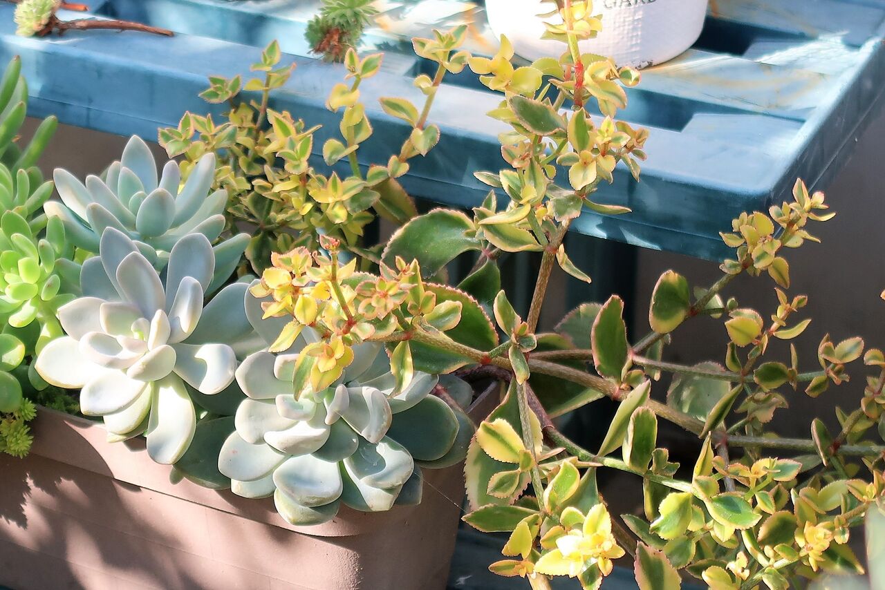 黄色のクッション状に広がるドリームスターはとても丈夫で育てやすい多肉です。足元の隙間を埋め、柔らかい印象を作り、独特の魅力があります。