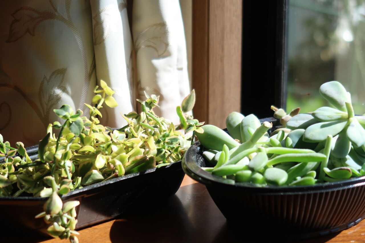 他の多肉は、挿し木用にカットしてから鉢を出しました。ガは退治しましたが、ドリームスターは枯れてしまいました。