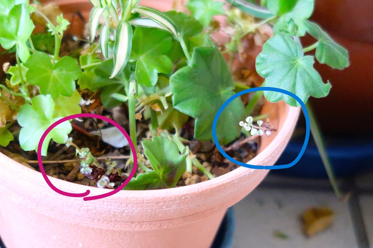 と、驚きました。ゼラニウムの鉢に挿し木をしたものがすぐについたのでよかったです。