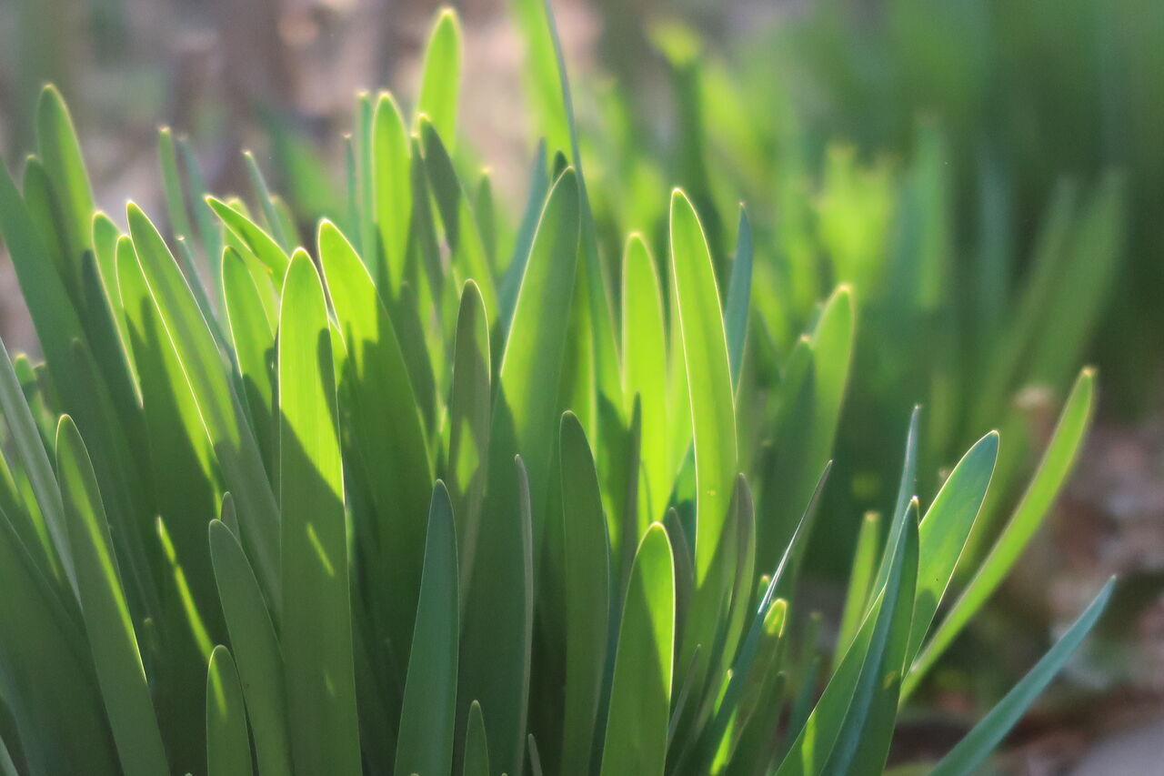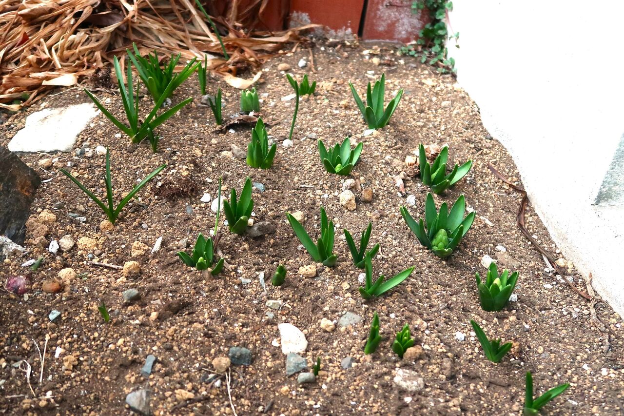 秋に植えた球根が芽を出しました。隣のオリズルランの枯れ葉、いつも株を冷害から守るため、新芽が出るまでそのままにしておくのですが、もう切り取ってもいいですね。