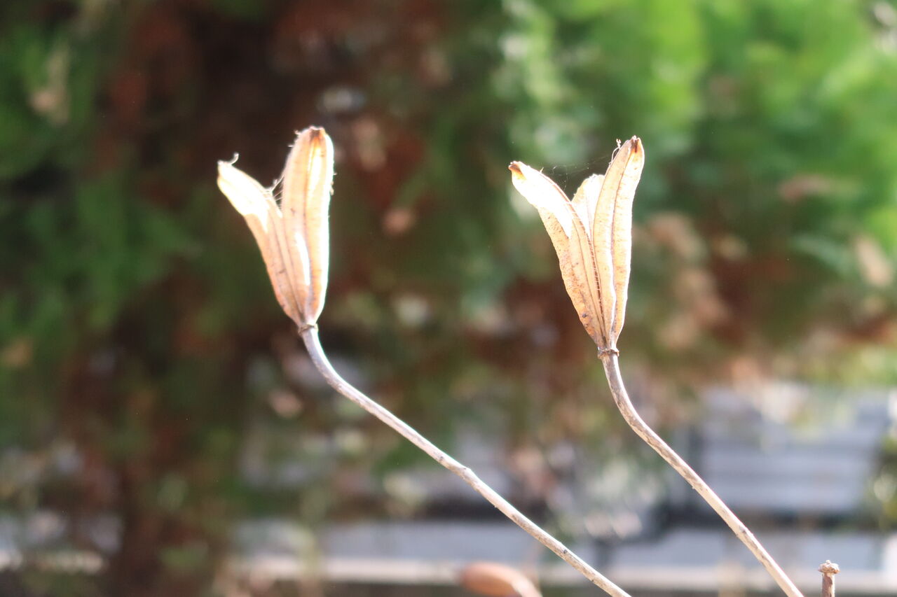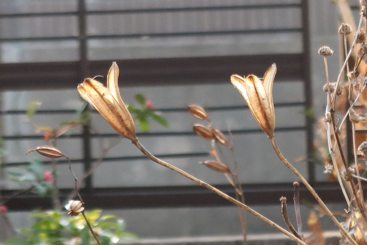ユリの種やヒメヒマワリ、シランなど種を一部残しておくと、冬から早春にかけての庭に華あって面白いですね。