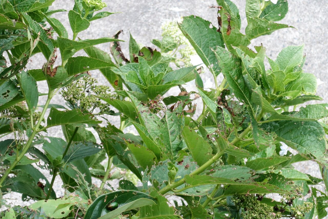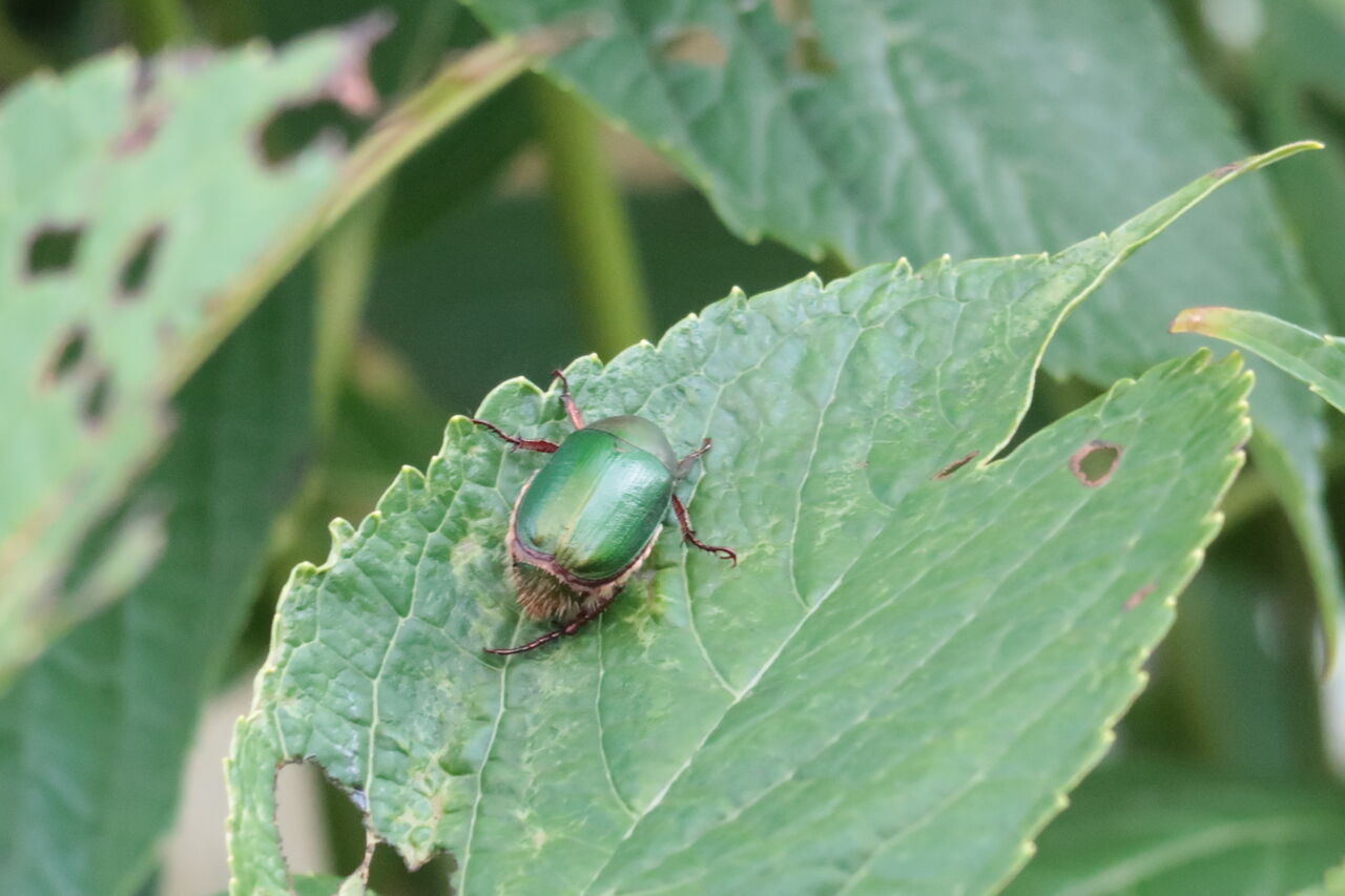 コガネムシは6~7月が多く庭に来て庭の木や植物の葉を食べてボロボロにしてします。幼虫は1~2年で成虫になります。