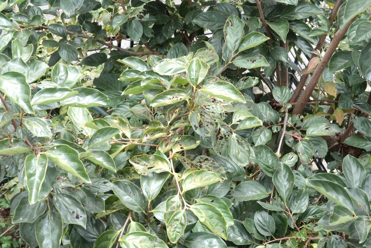 柿の葉がボロボロ。こんな葉をした庭木を見たら要注意!!