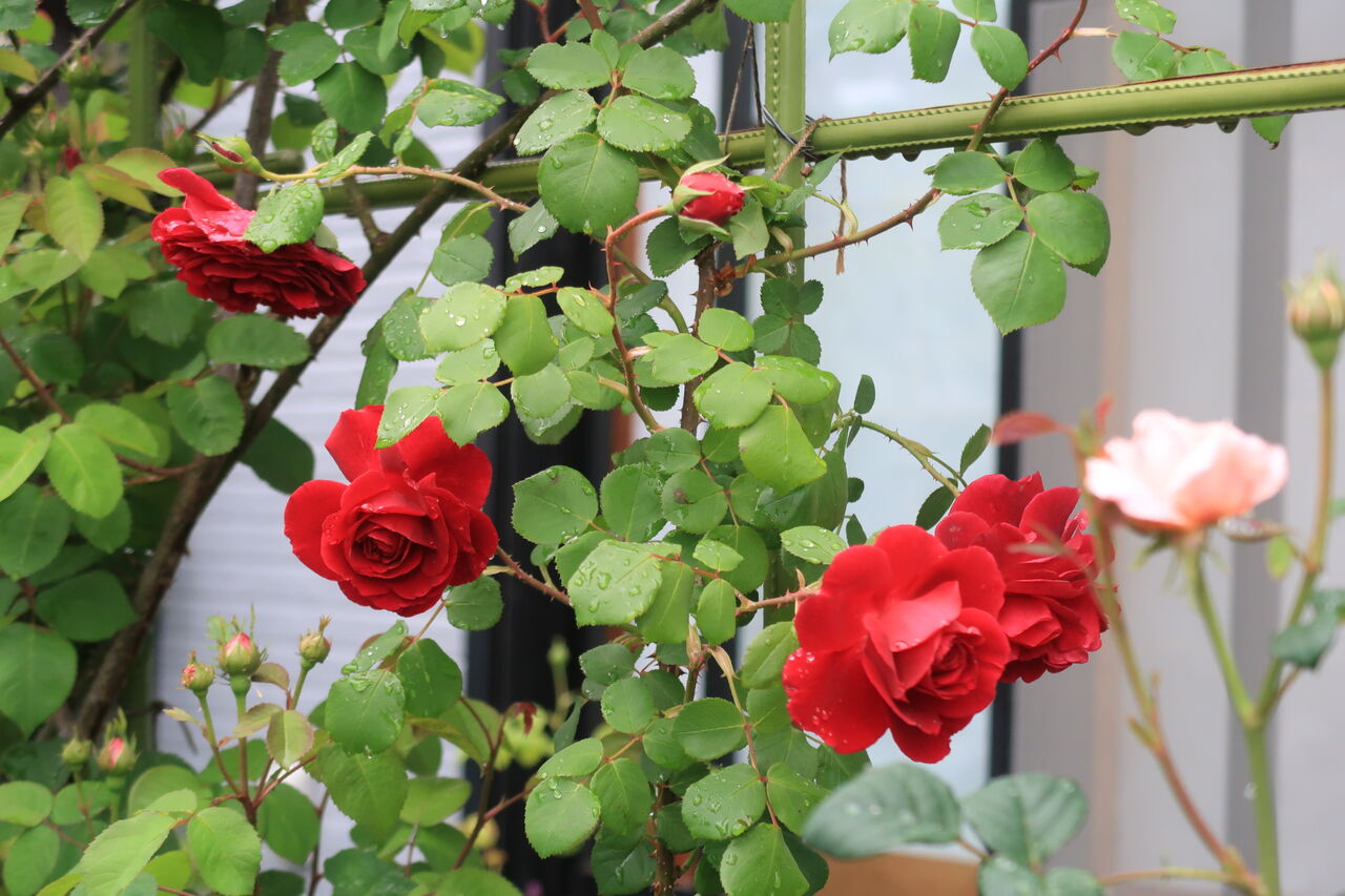 昨日鉢増ししたバラたちもこんなに咲いています。