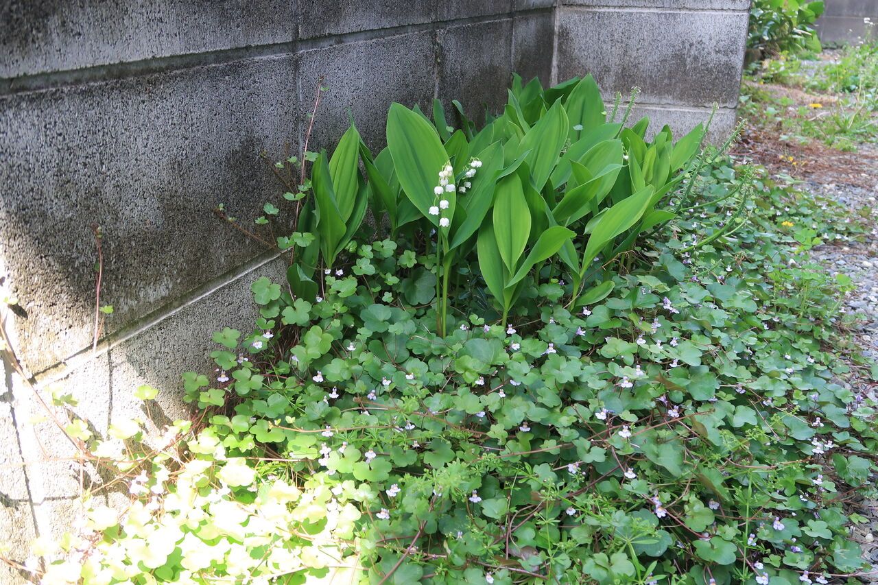裏のスズランが咲いています。足元をツタバウンランが覆います。いい仕事してますねぇ~。