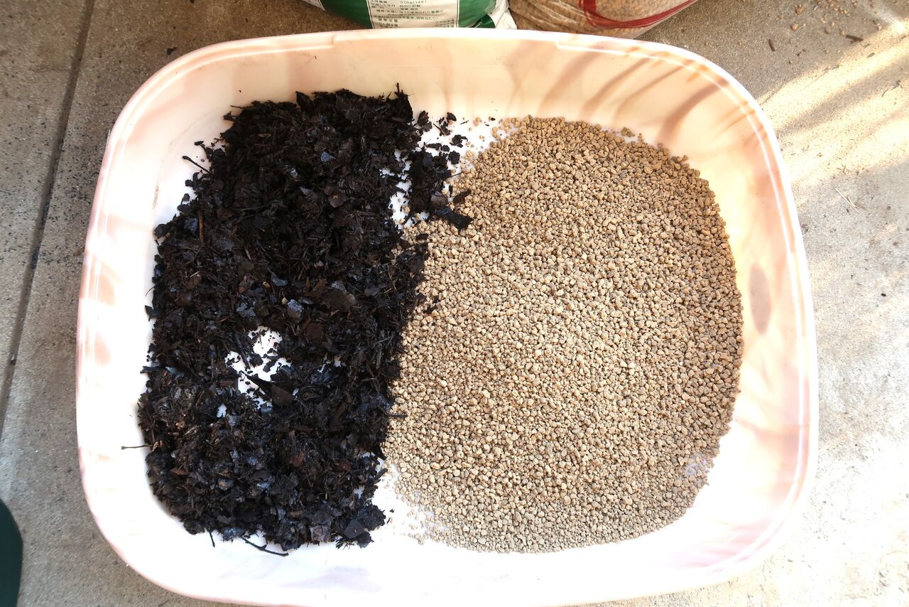 右・赤玉土小粒、左・腐葉土