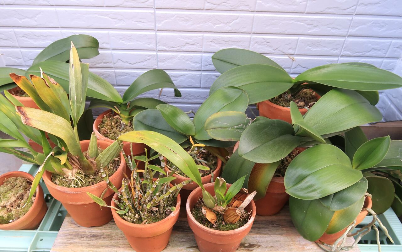 植物は年単位で観察が必要ですが、デンドロビウムとオンシジュウムはちょっと悲惨な姿です。