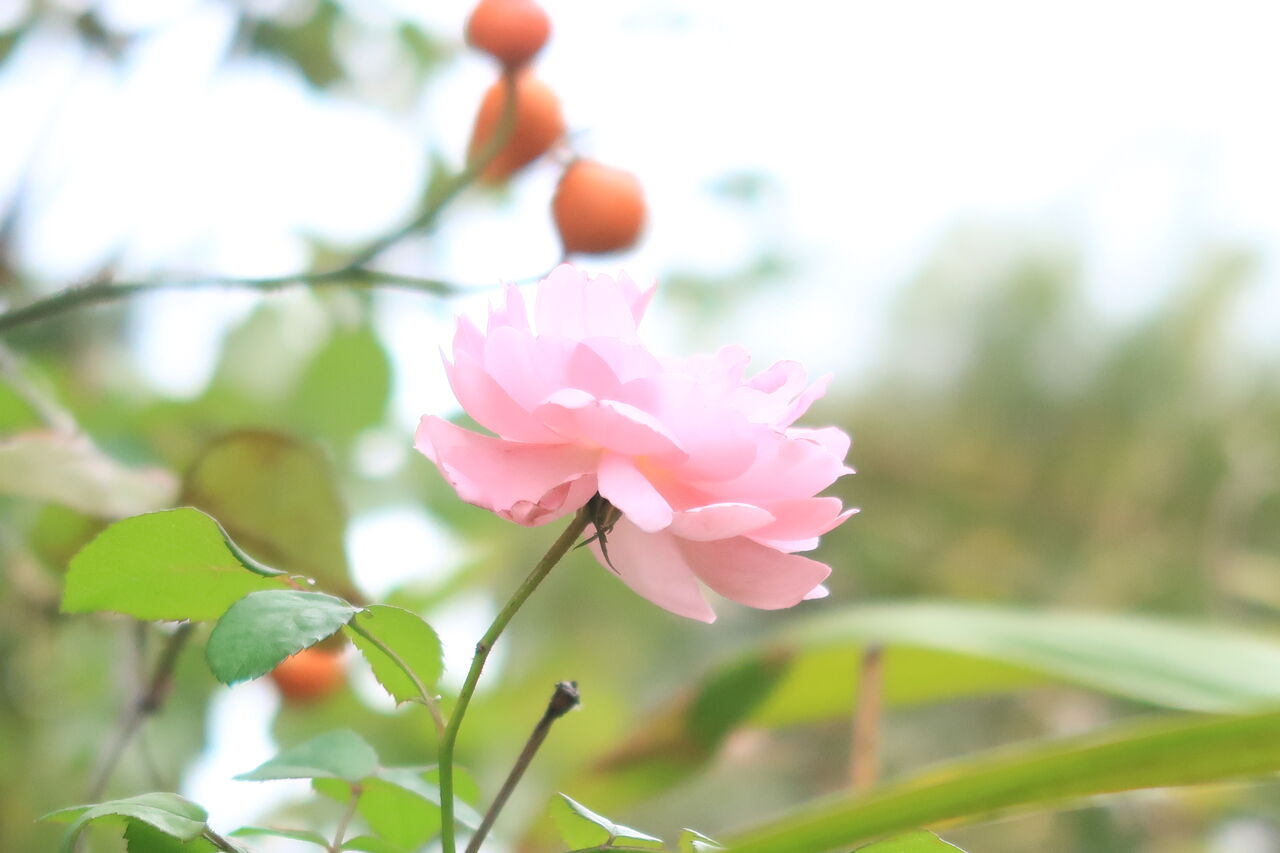 10月8日、パタパタ庭にやって来てバラにとまりました。