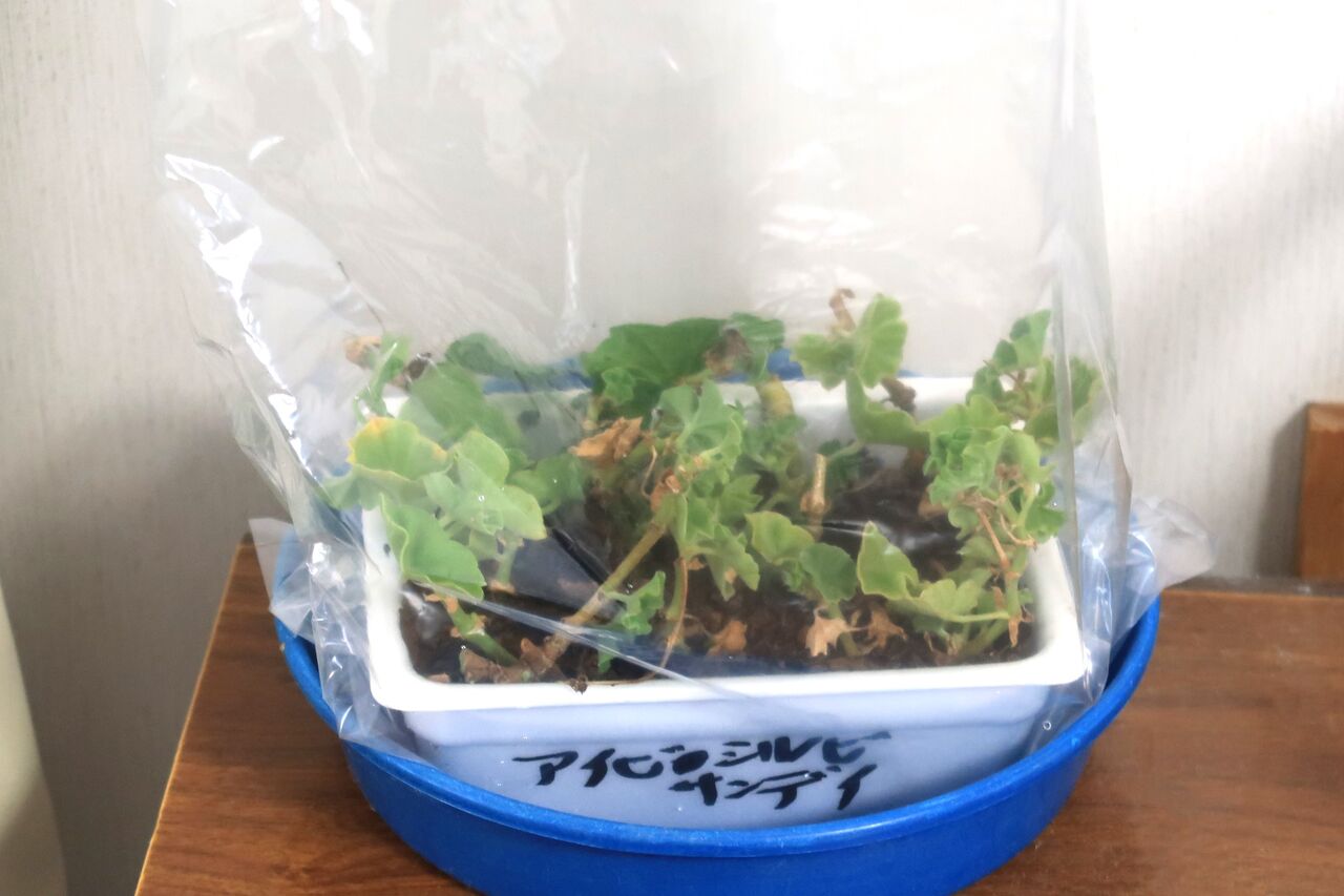 さし木をしてビニールの袋に入れて乾燥防止をしました。