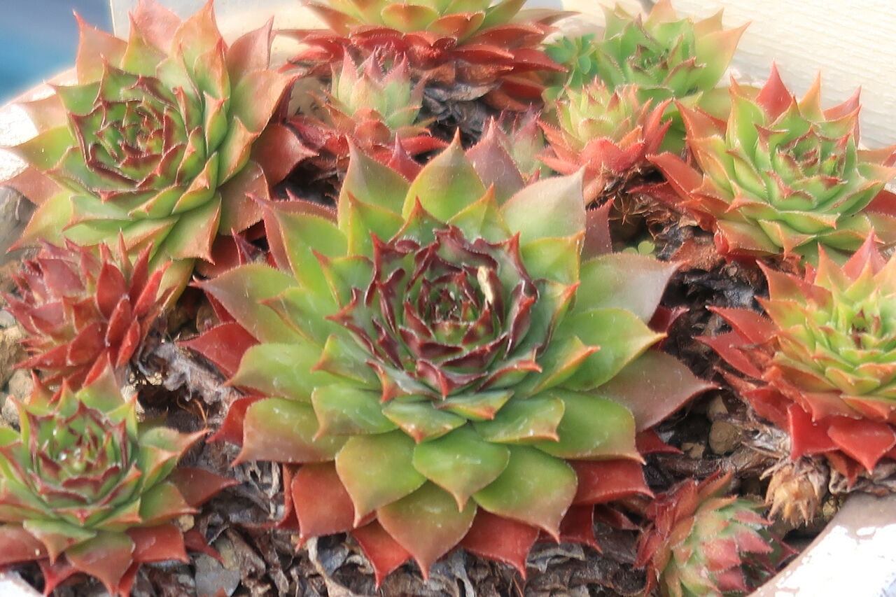 エケベリア七福神は葉の縁が紅葉を始めました。
