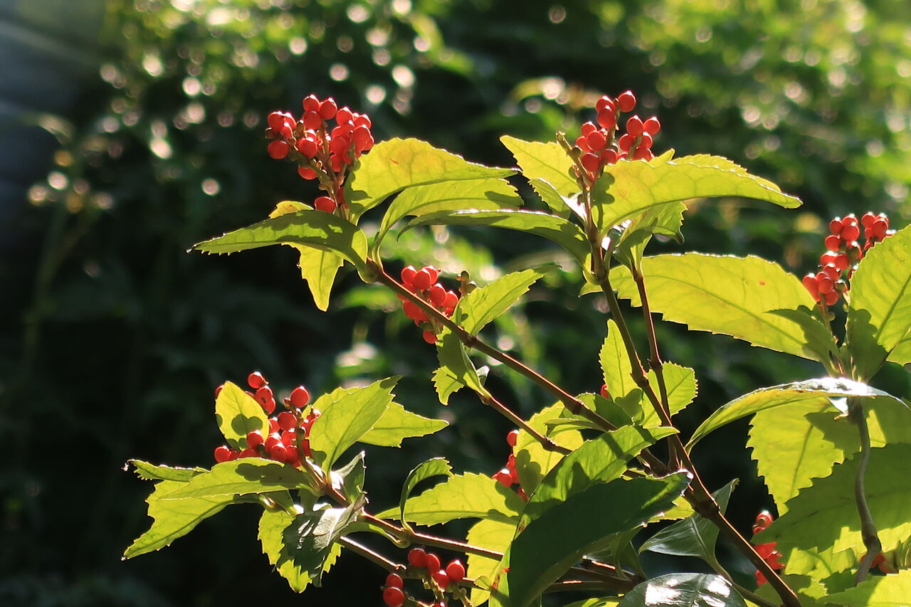 11月5日の写真です。気が付くとさらに赤く色づいていたセンリョウ