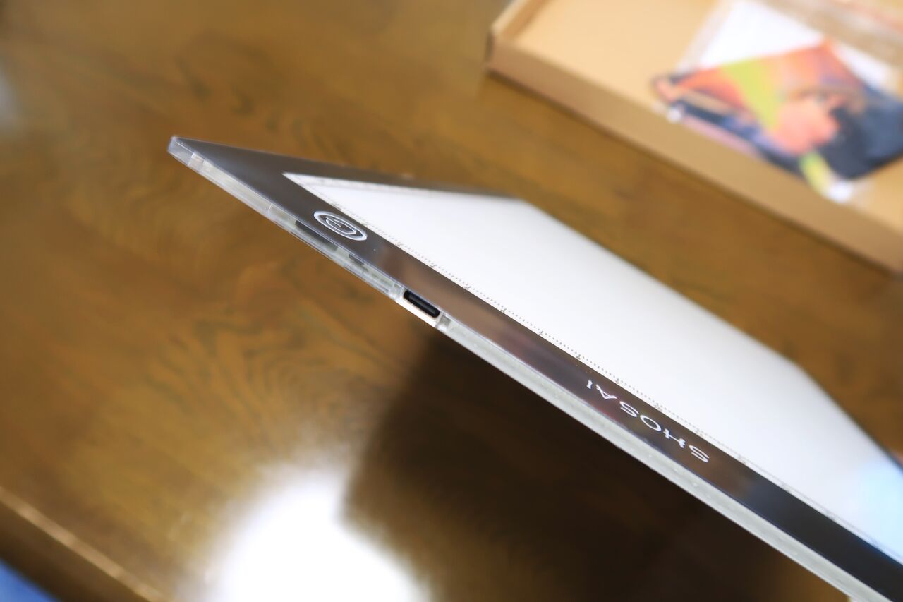 今までイラストを描くときは下描きをガラス窓に当てて写していました。ずっと立ちっぱなしはきついし、日が暮れると描けなくなります。これからもたくさんのイラストを描くので、トレース台を買いました。