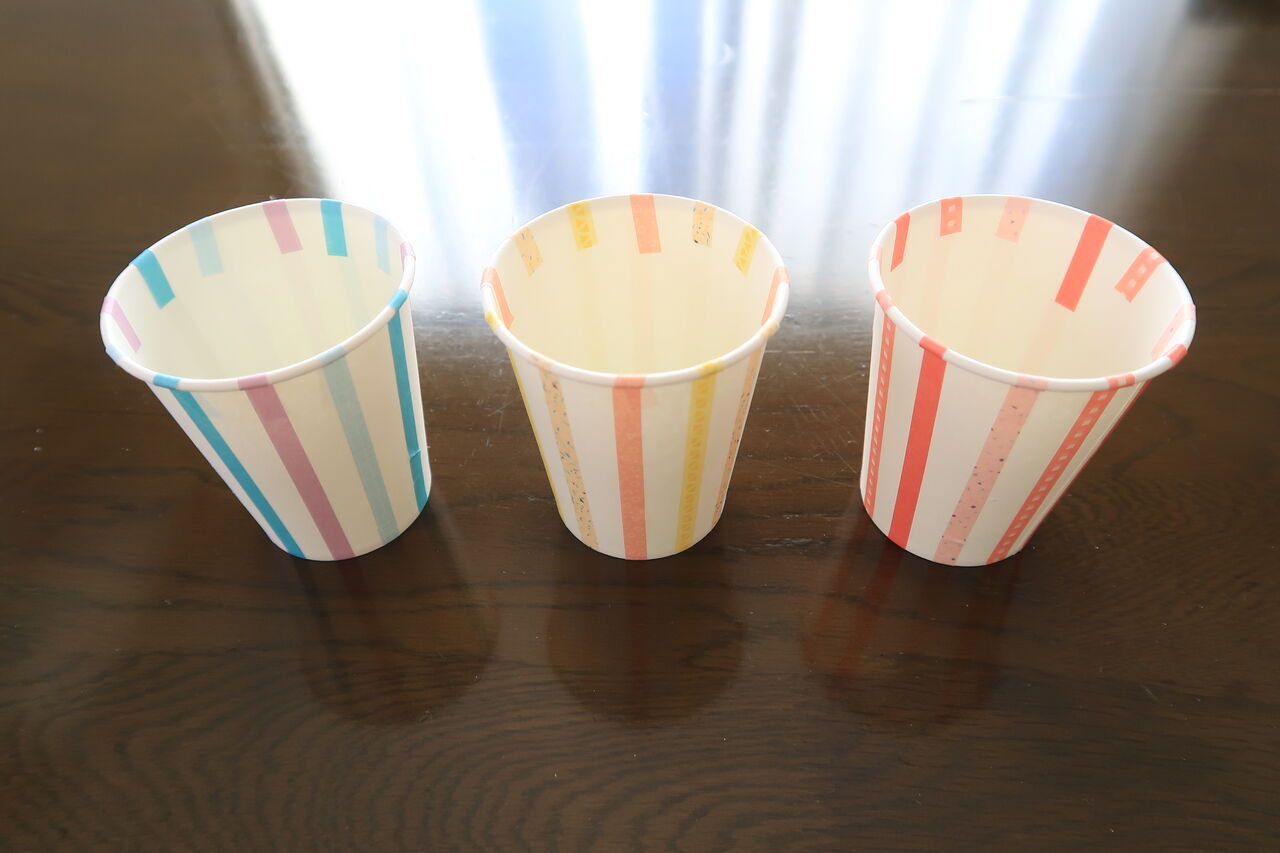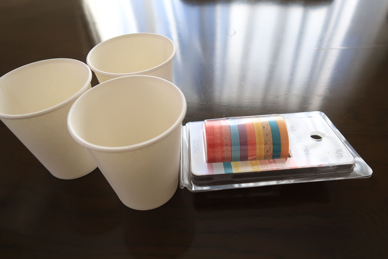 紙コップと100円ショップで買ったマスキングテープ。