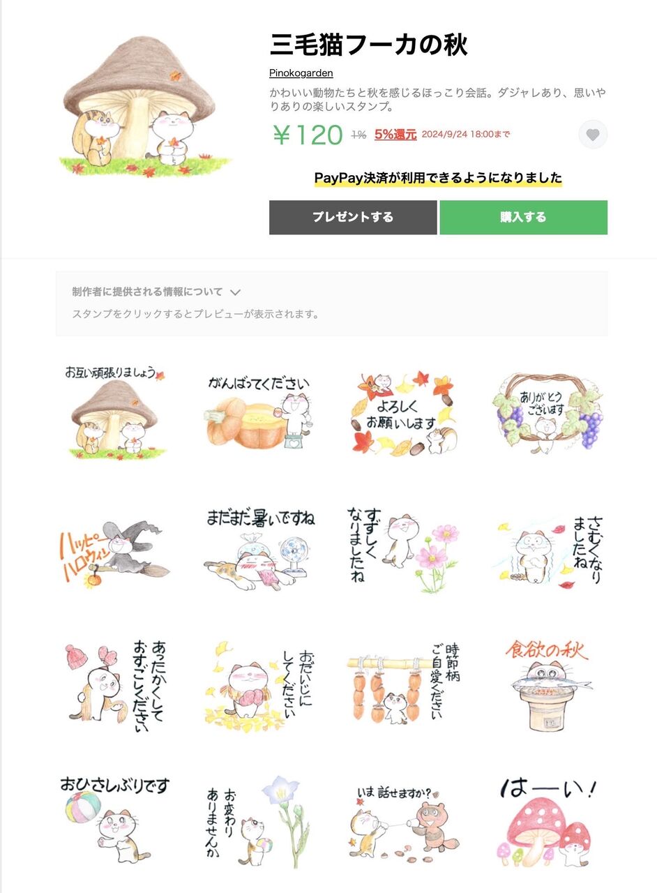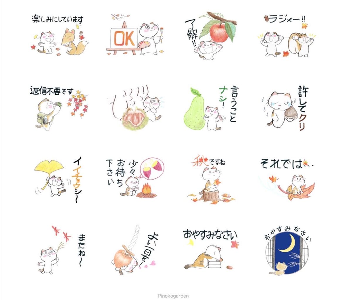 LINEスタンプ「三毛猫フーカの秋」が9月24日から販売開始となりました。