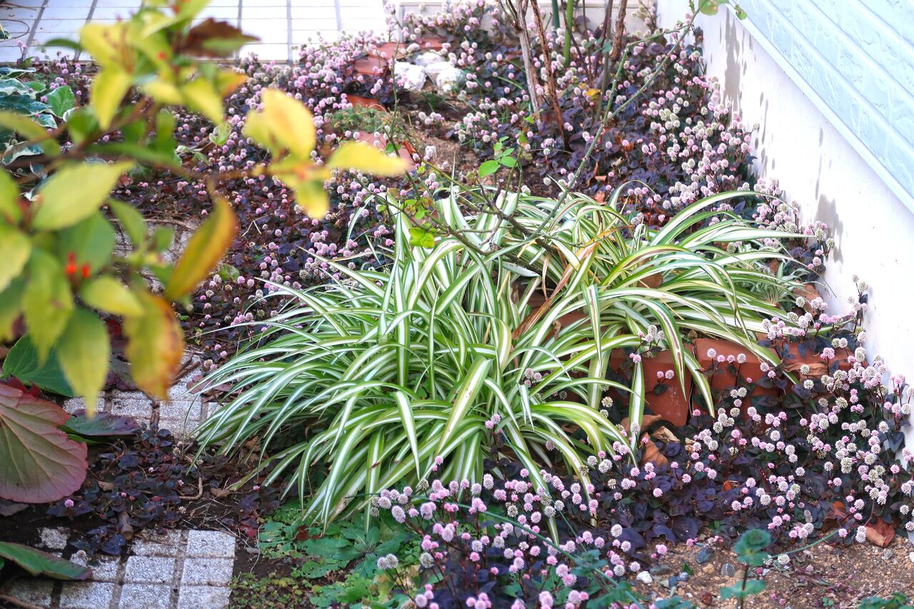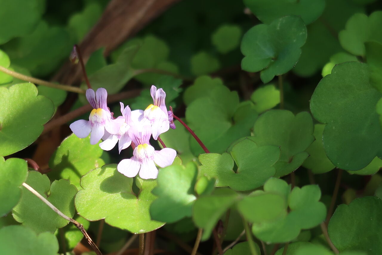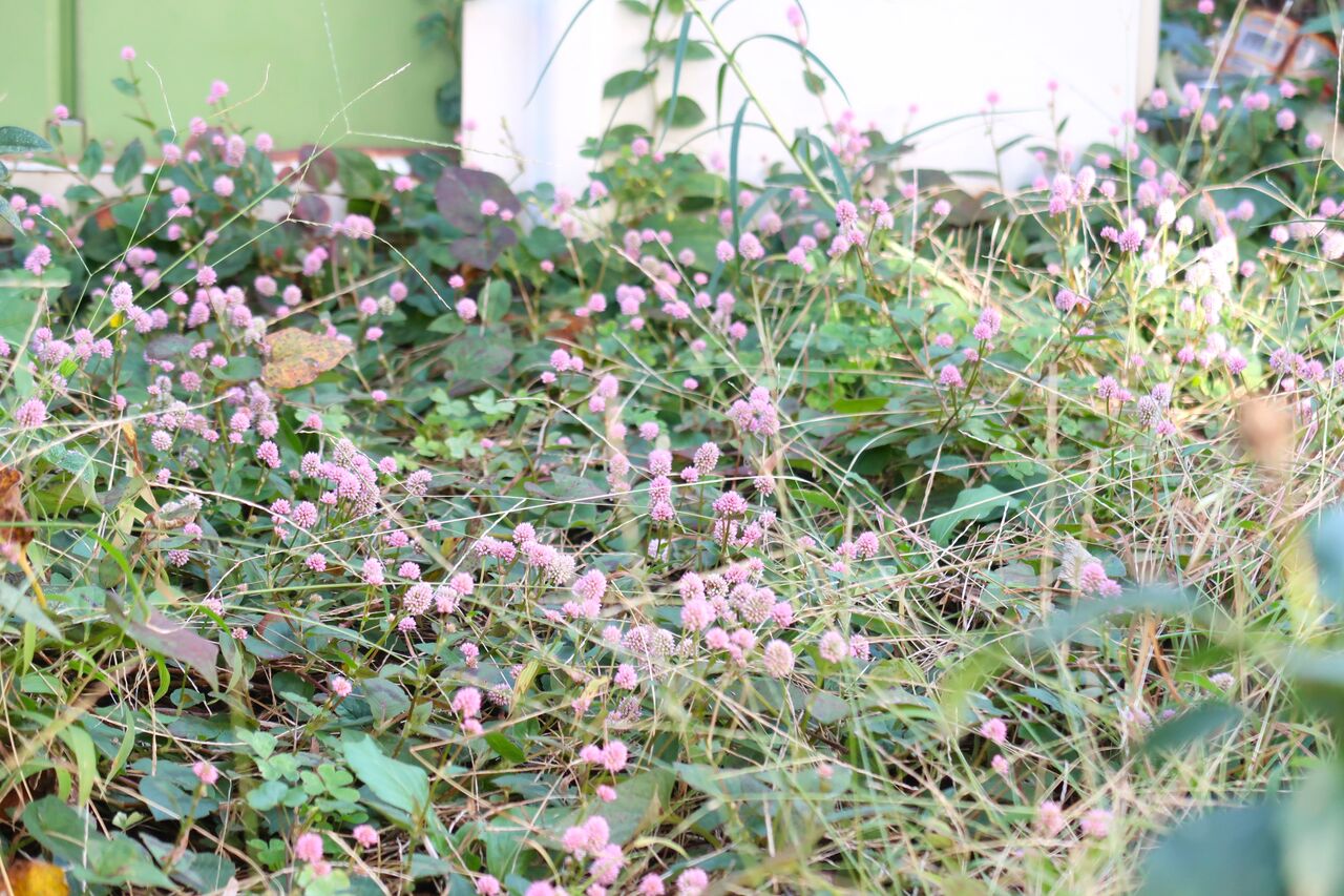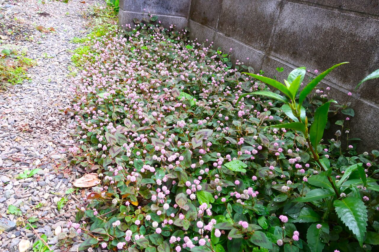 ポリゴナムもツタバウンランもカタバミも、家の裏で日があまり差さない場所でもきれいに咲いています。