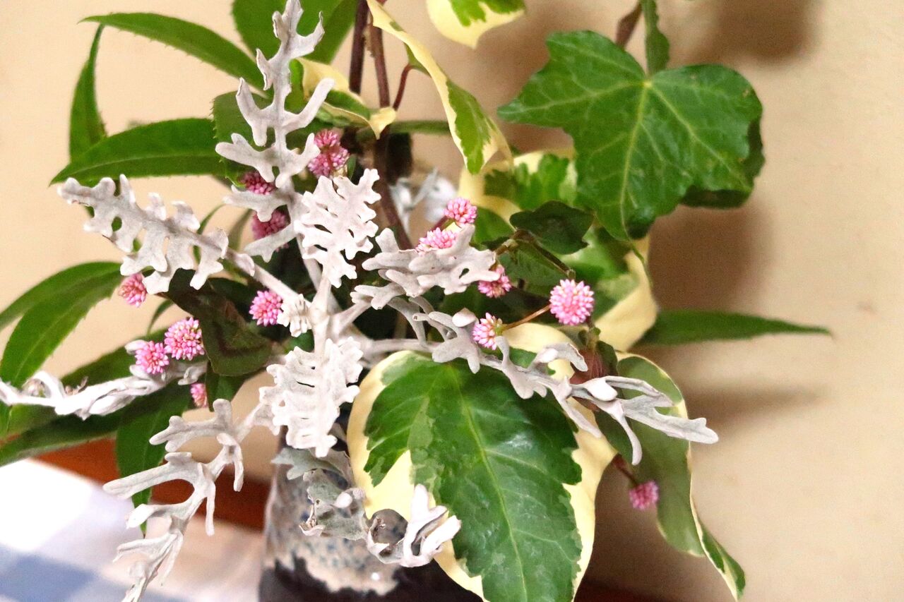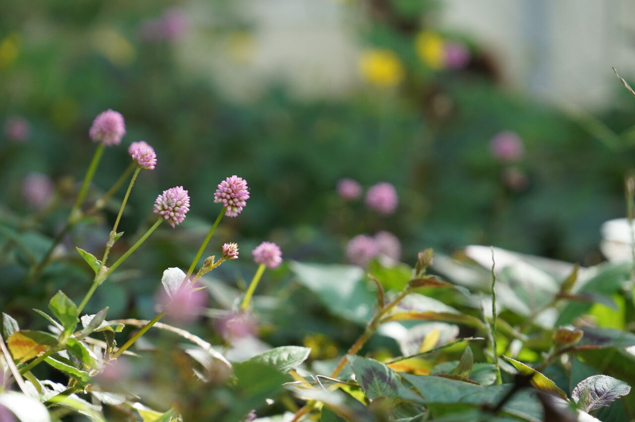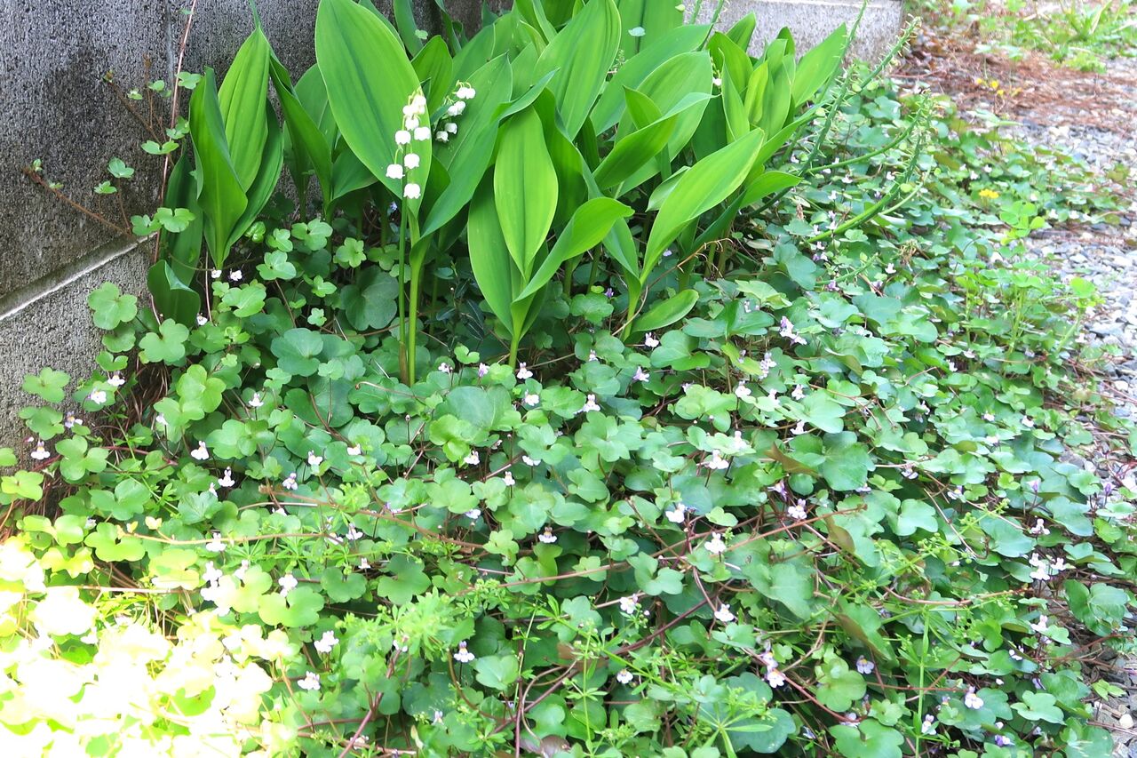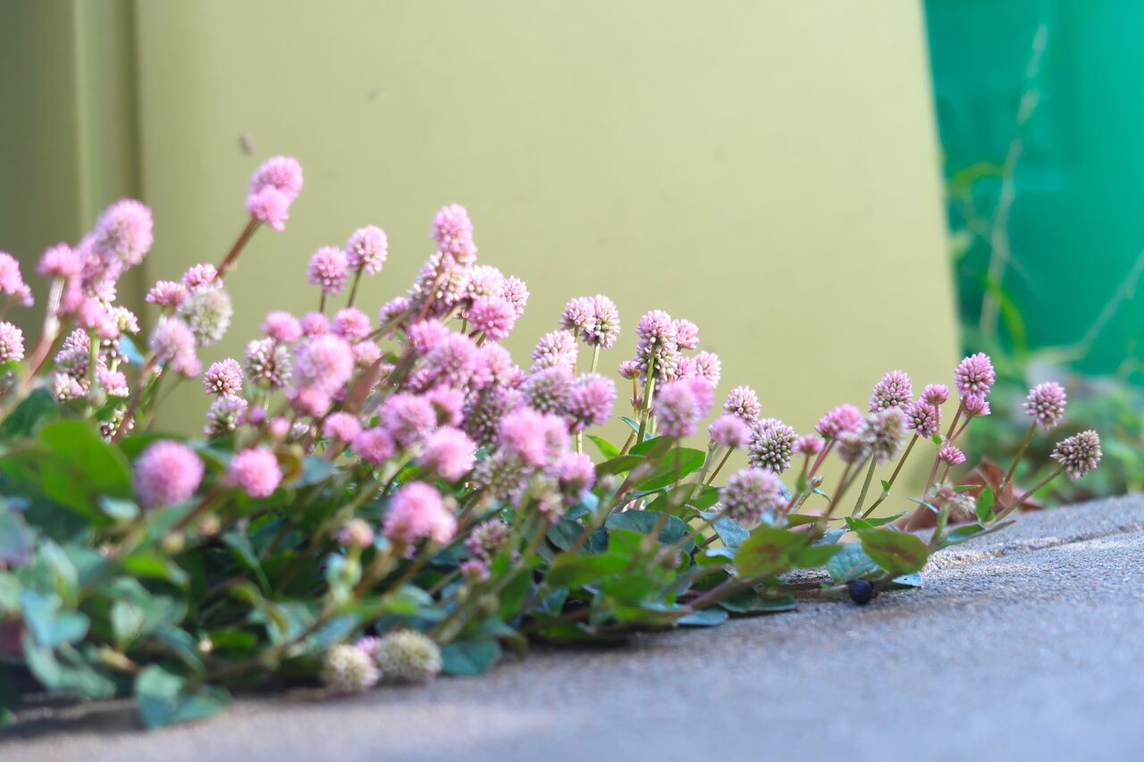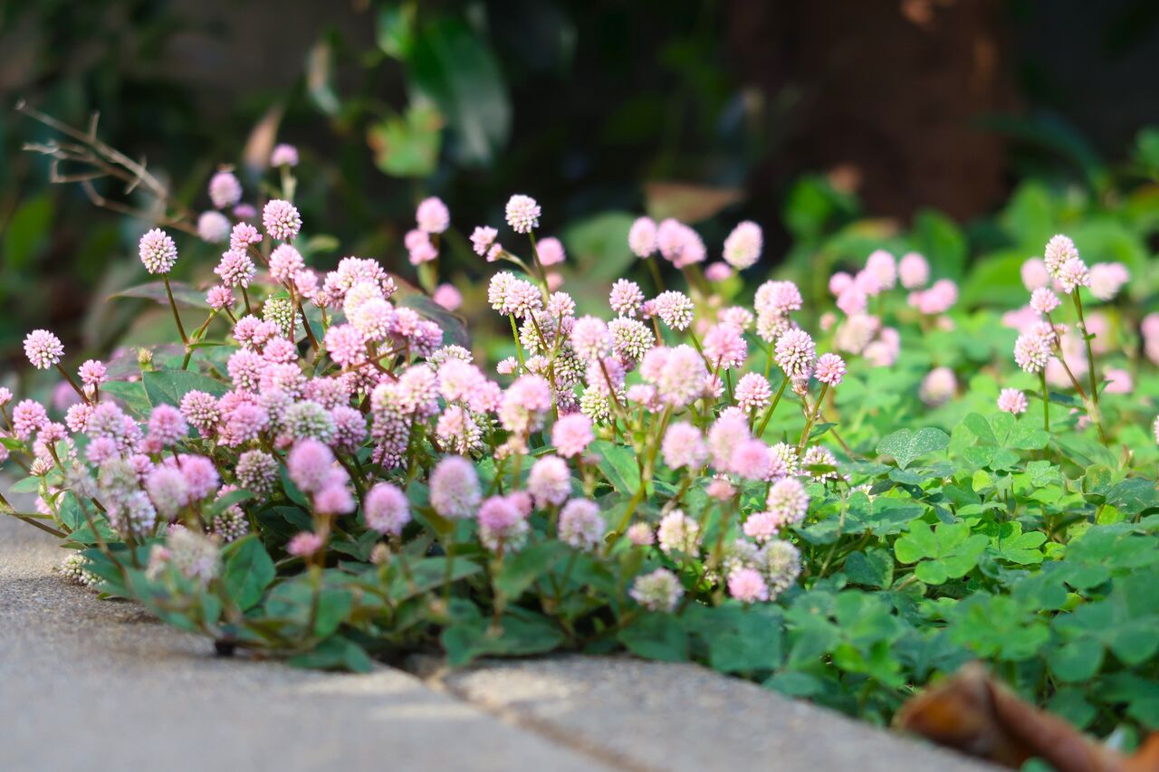 ポリゴナムもツタバウンランもカタバミも、家の裏で日があまり差さない場所でもきれいに咲いています。