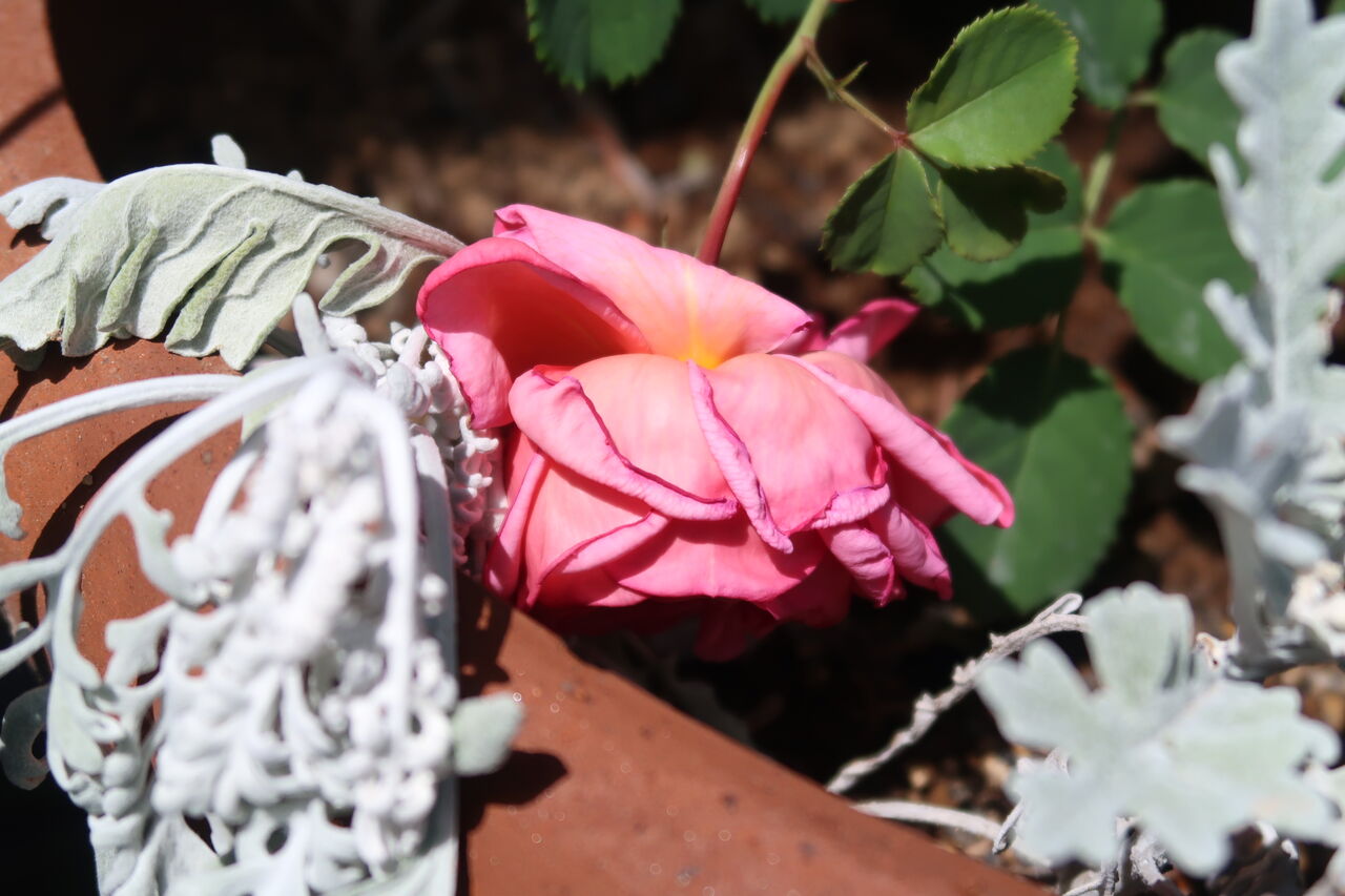 バラも咲きました。抜こうと思っていたアレキサンドラオブケントです。根っこに障害があるのか、花がしおれています。