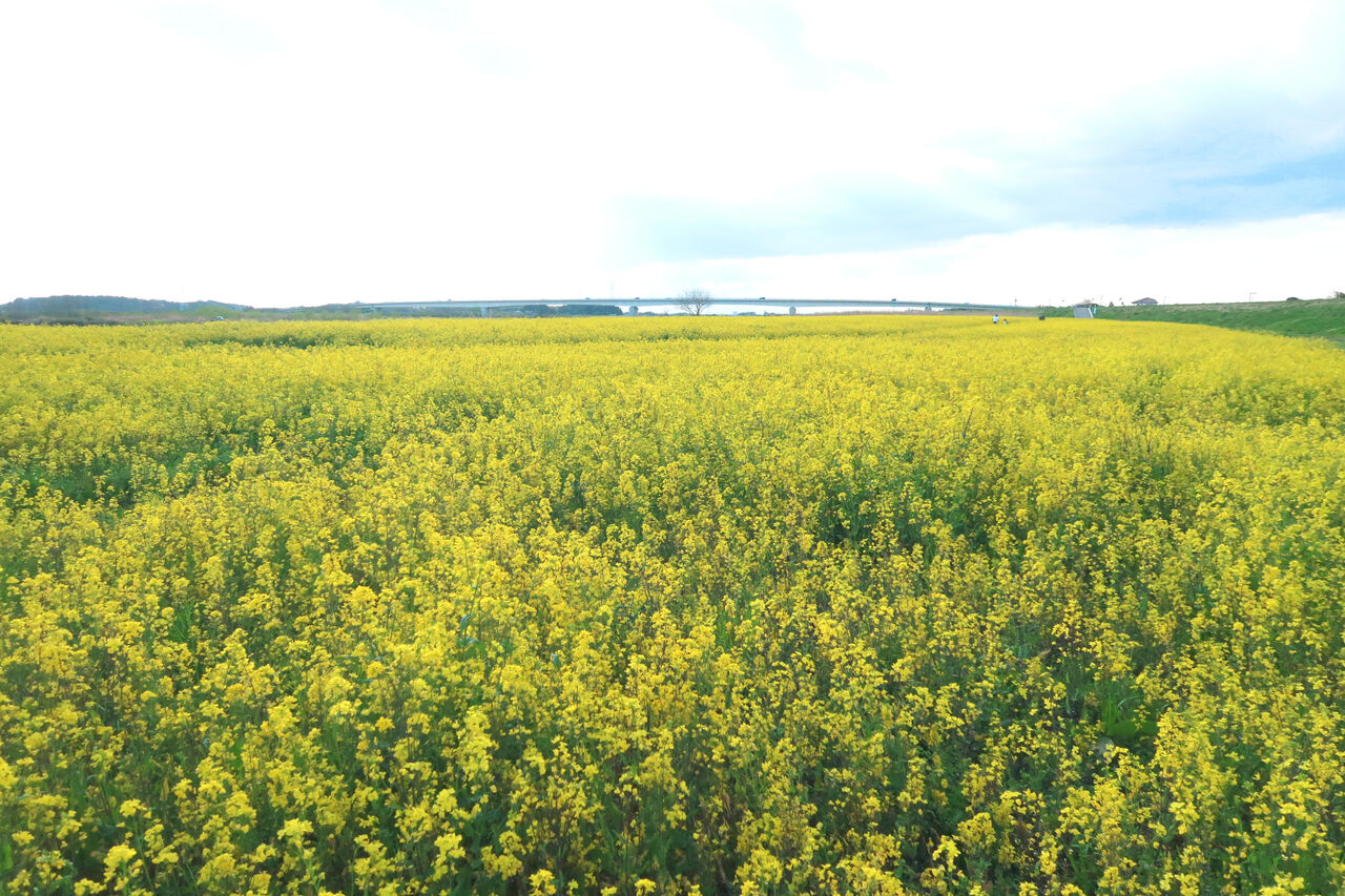 モリモリに花が咲いていて真っキッキのふわふわの絨毯でした。昨年は7分咲きくらいでしたが、今年は満開です。背丈も高くなっていて、自分が菜の花に埋もれている感じでした。