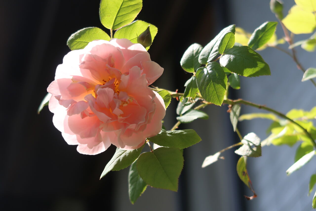 コテージローズは、太いシュートをカミキリムシに食べられて折れましたが、また別のところからシュートを出して咲いています。強い!!