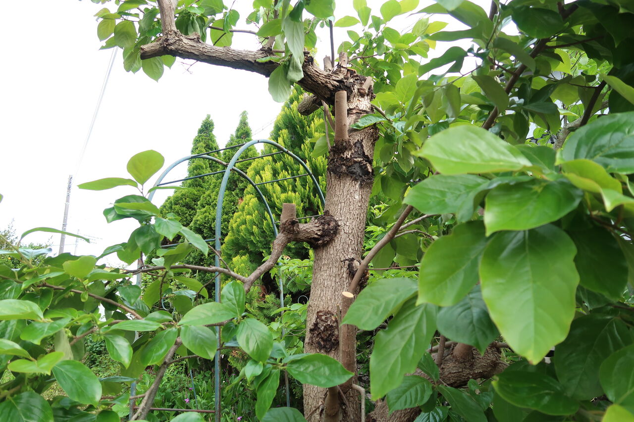 柿の木は、虫食いがひどく、枝をそのままにしておくと風にあおられて折れてしまう危険があるため、枝を切りました。