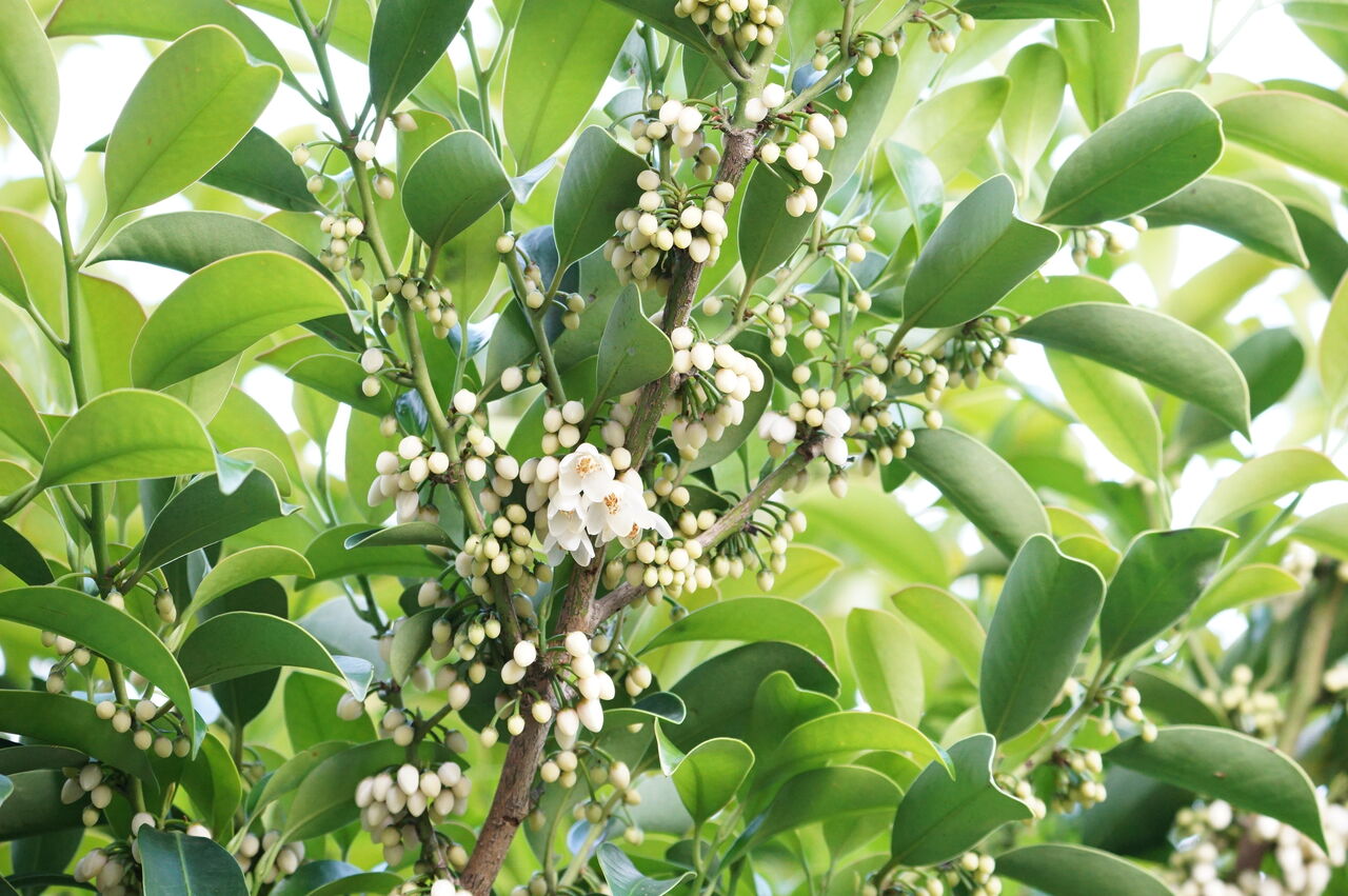 サカキの花が甘い香りを放っています。今年はミツバチが少なくあまり羽音は聞こえません。そういう年もありますね。