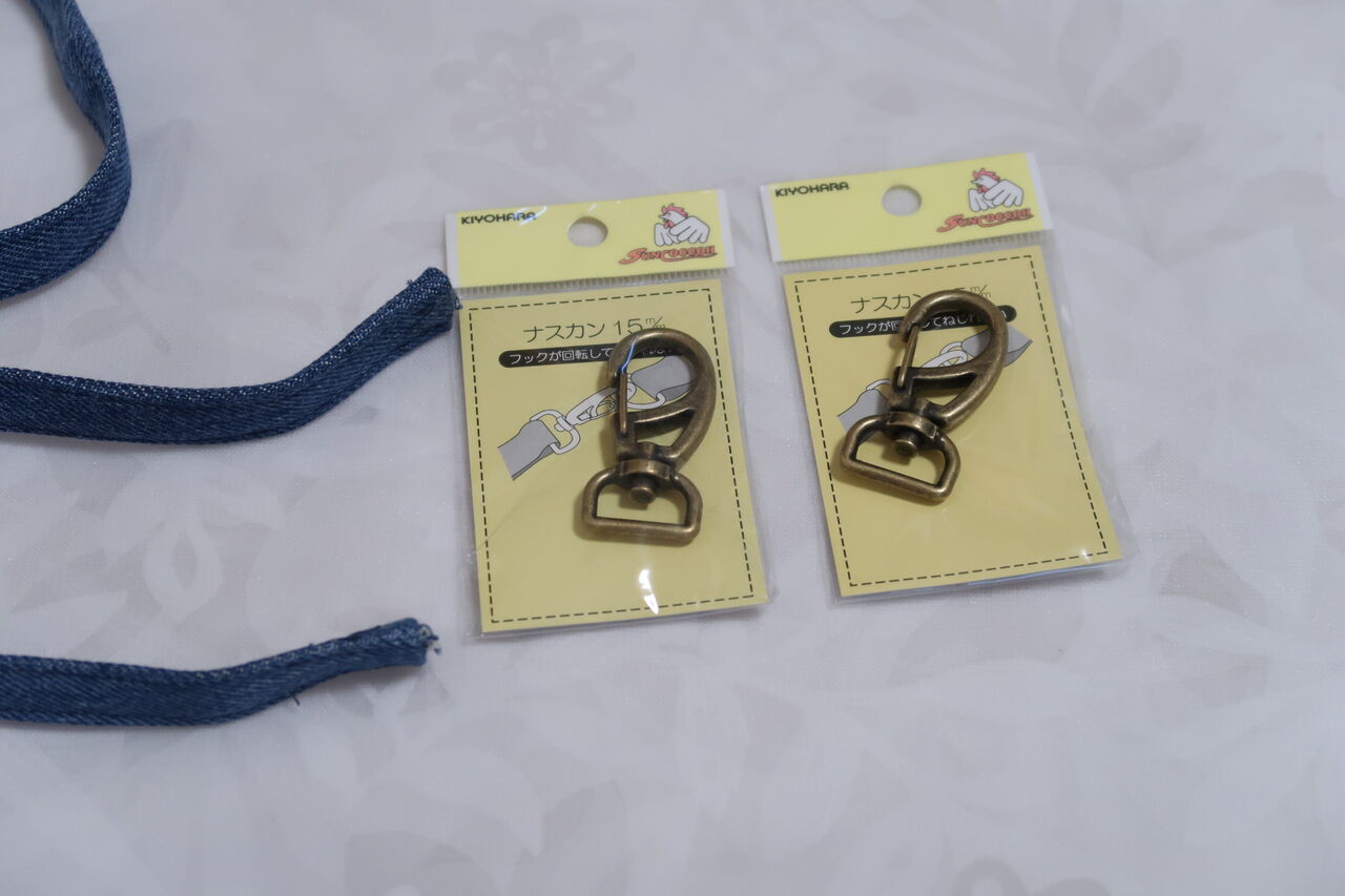 ナスカンをつける時、折り込む方向を同じ向きになるように気をつけます。
