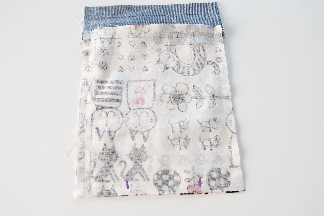 ジーンズ布と内布を縫い合わせます。縫い代は1センチです。