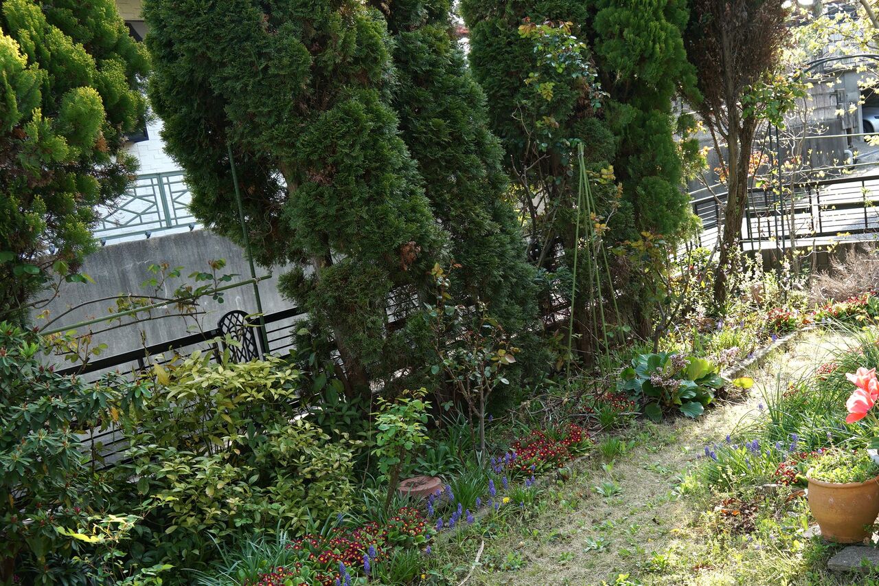 コニファーの根は浅く横に広がるものが多いらしく、狭い庭では、庭中コニファーの根っこになってしまいます。