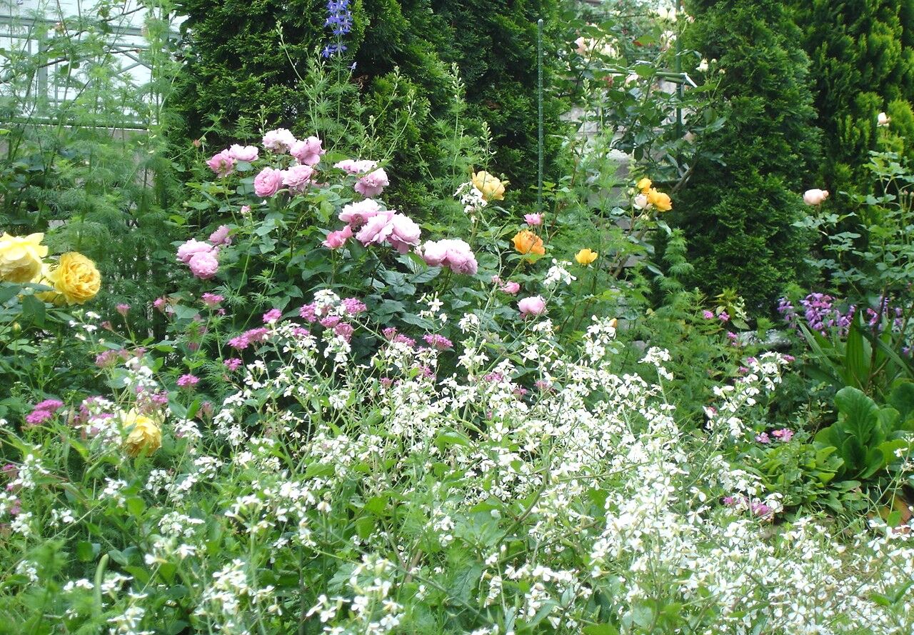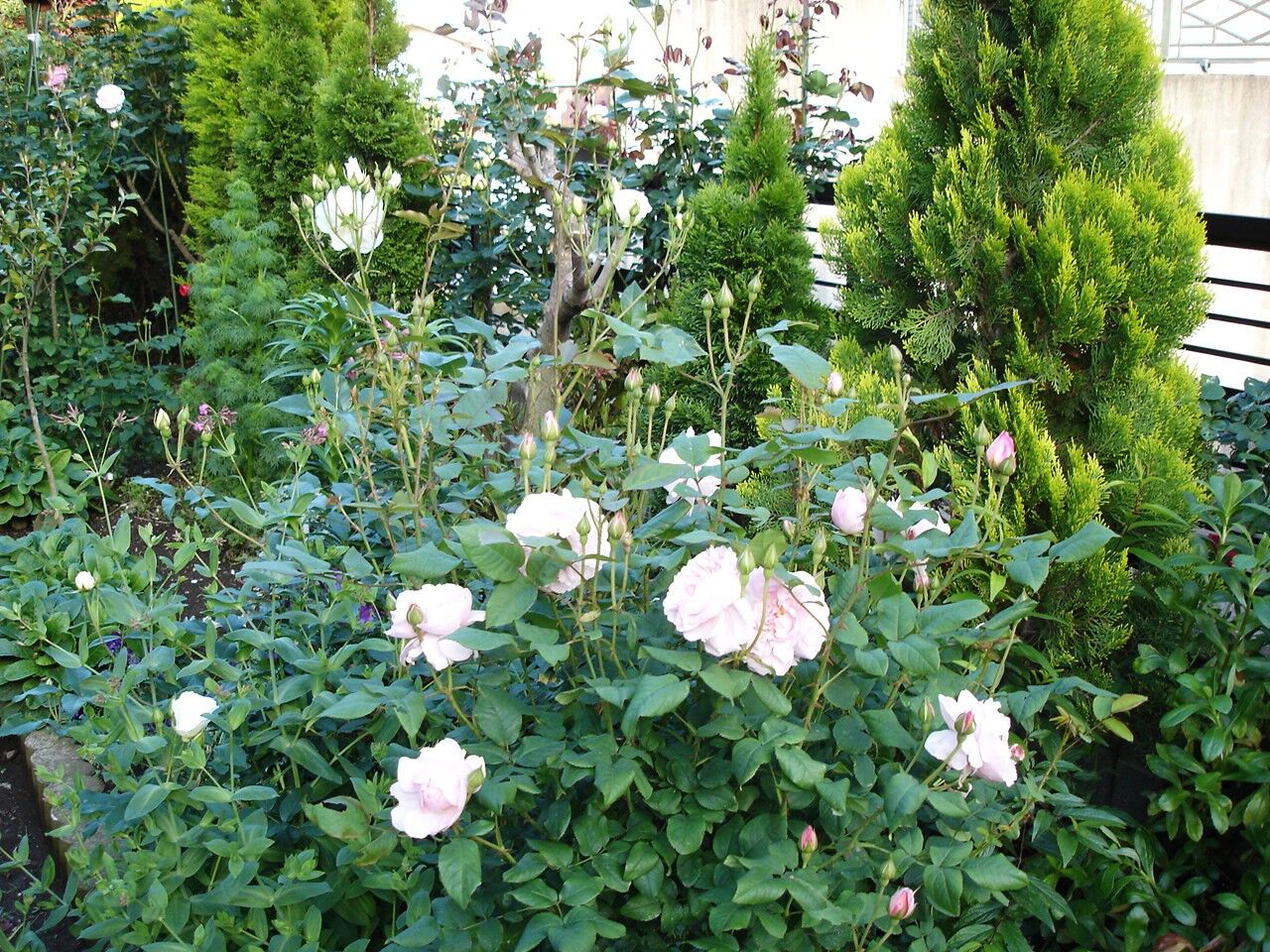 もっと厄介なことは、私はバラを引き立たせるために緑を植えたんですが、コニファーが成長するにつれバラの肥料を吸い取ってバラが育たなくなったこと、しまいにはバラに肥料をやるために穴を掘ろうとしてもコニファーの根が凄過ぎて穴を掘ることができなくなったことです。