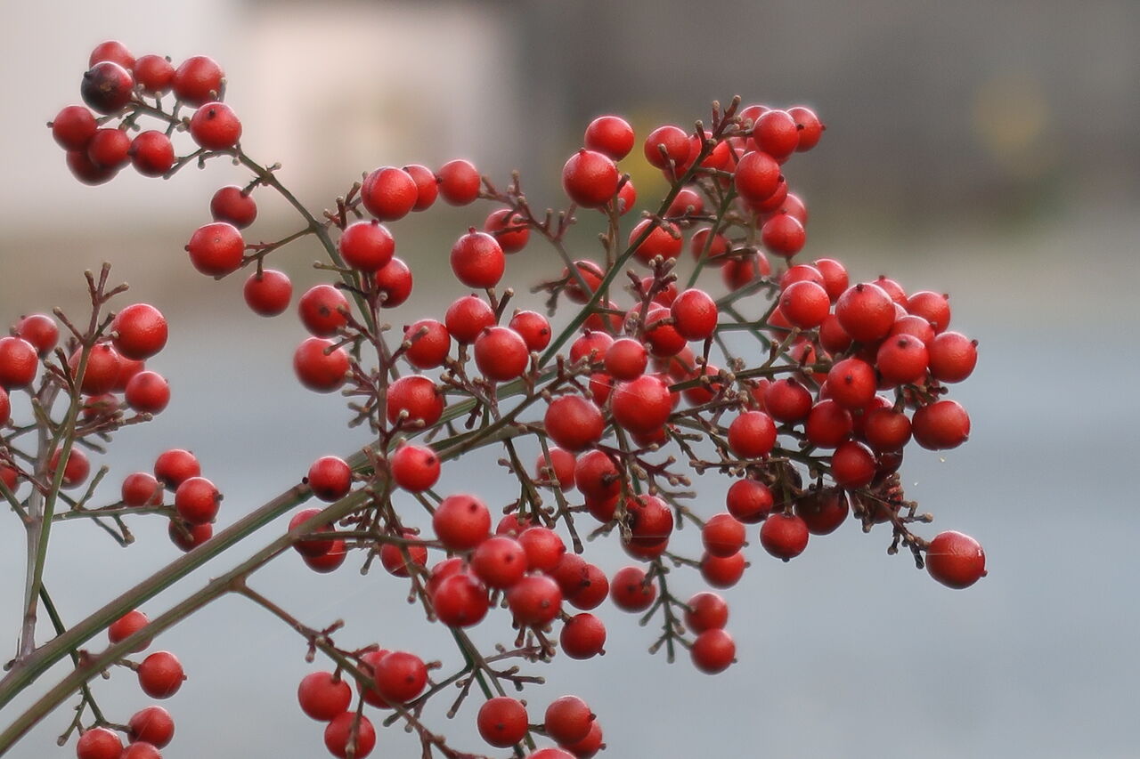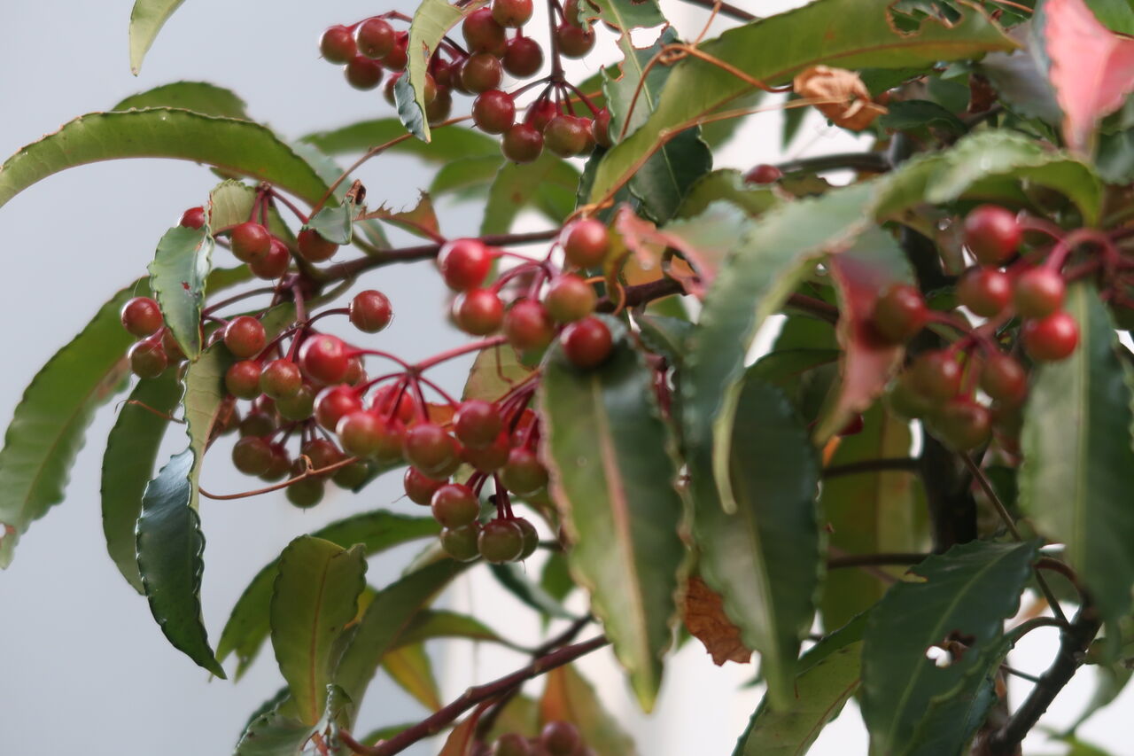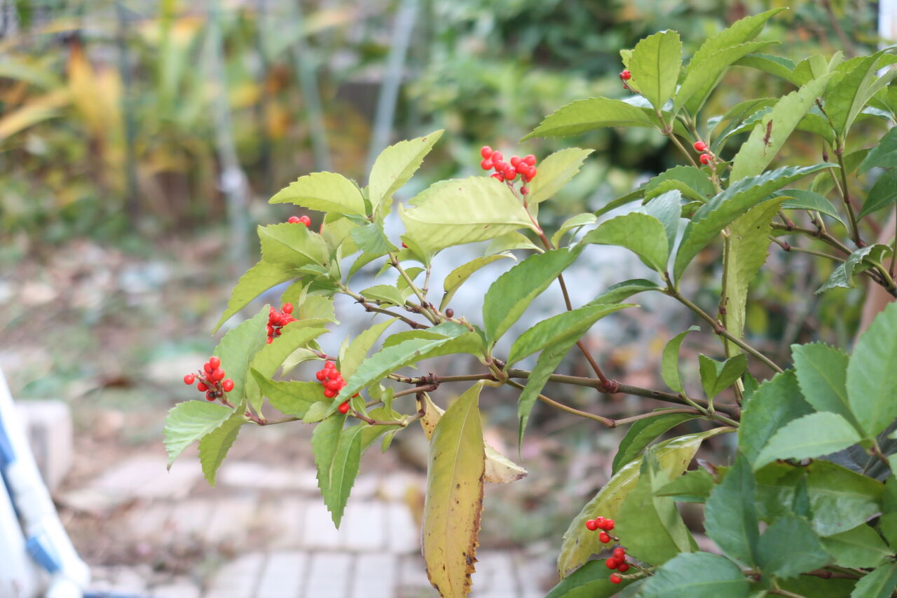 鳥が種まきした南天、来年のお正月用の生花に使いたいです。