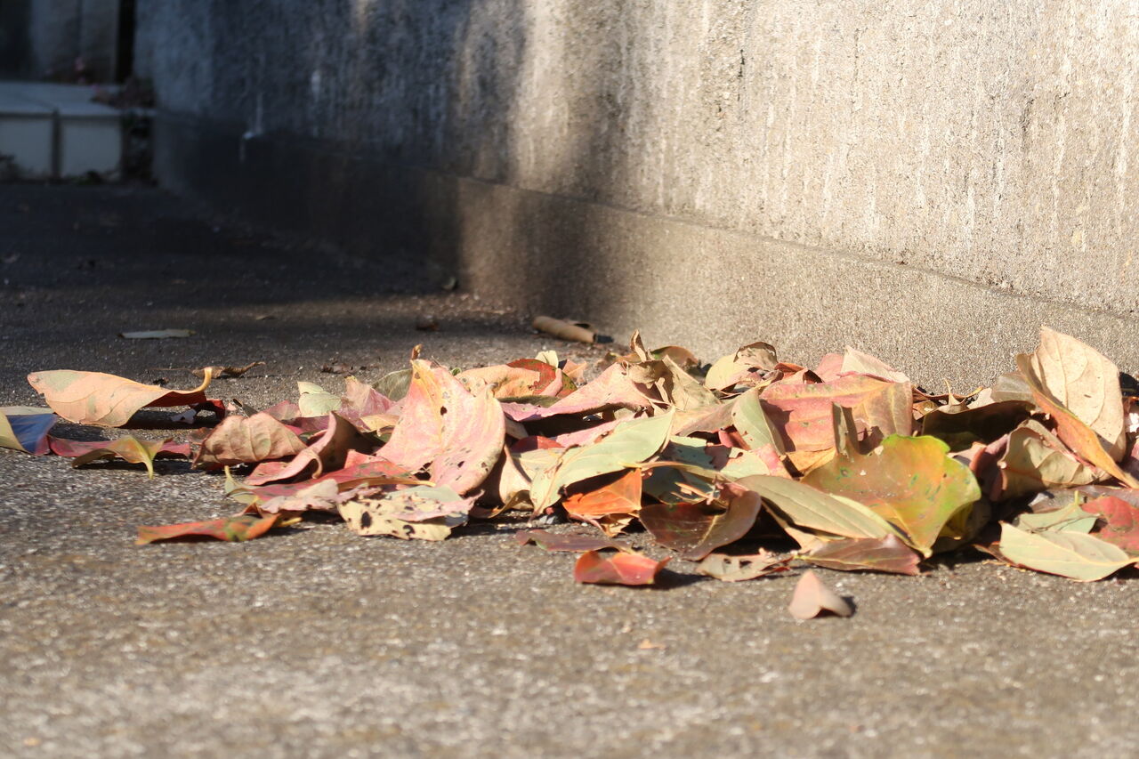 竹箒で掃きますとこれがすっかりよく集められます。側溝に溜まっている落ち葉も難なく掃いて集めることができました。なぜ今まで使わなかったんだろう・・・