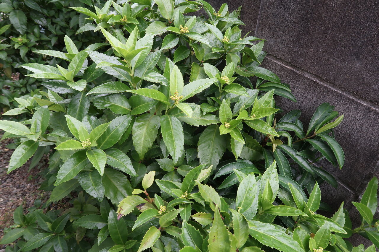 家の裏の千両は肥料をやったのに、今頃花が咲いています。