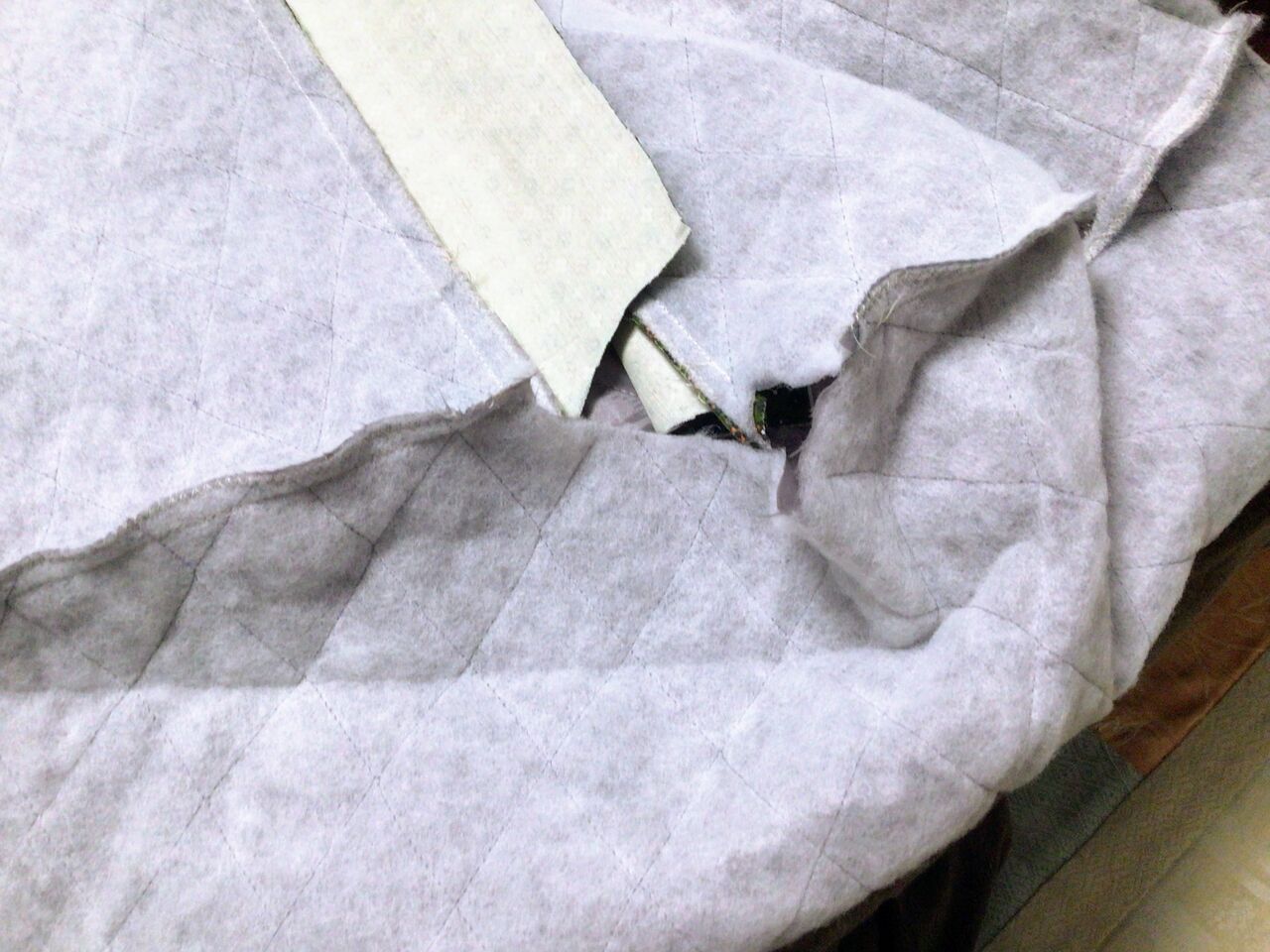 ほぼ直線です。裏つき、しかもキルト綿付きは初めてなので、出来上がりがとても楽しみです。寒い日に重宝する一枚は貴重です。